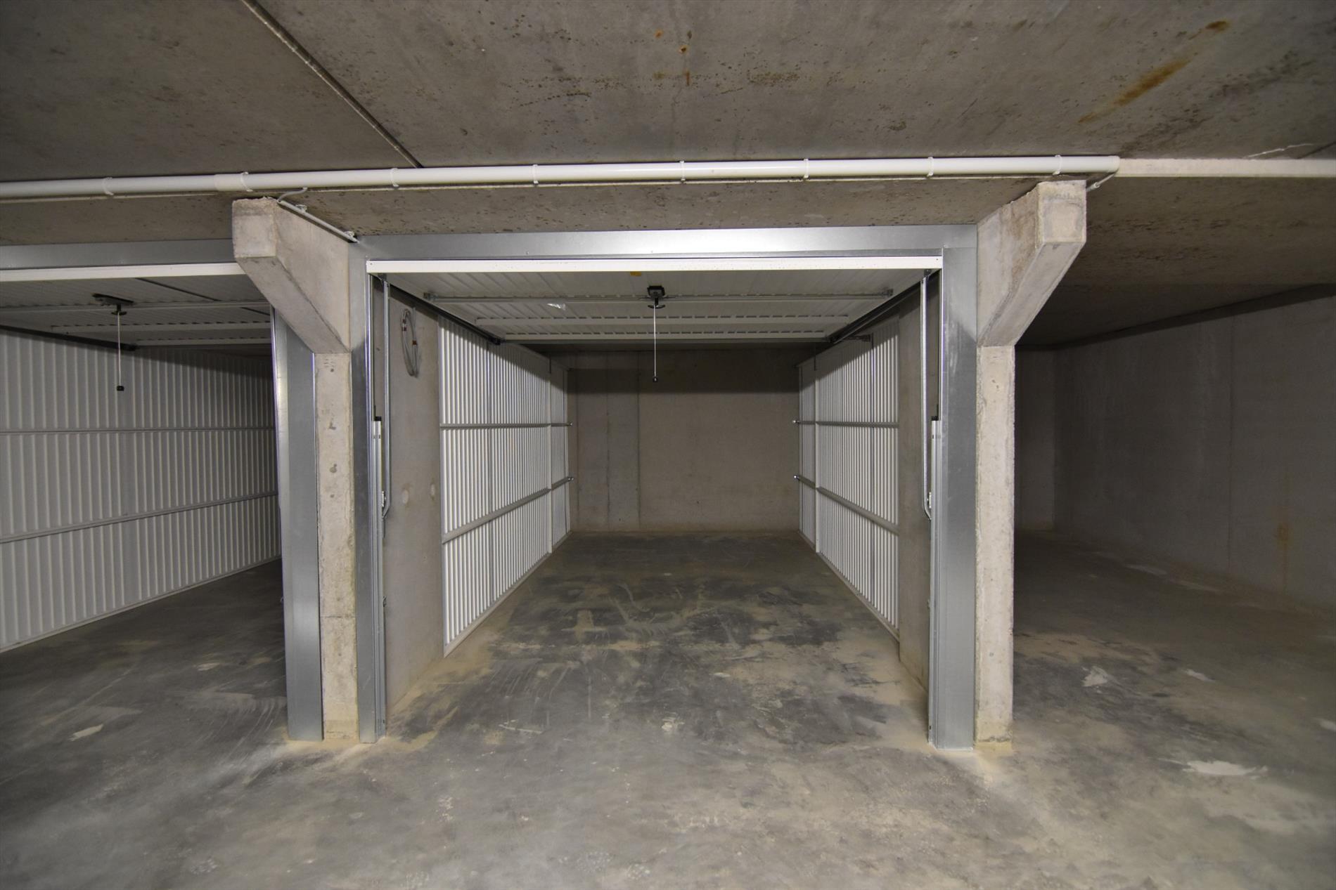Indeling: inkomhal met vestiaire en gastentoilet, lichtrijke woonkamer met ingerichte leefkeuken, ruime berging met aansluiting voor wasmachine en droogkast, nachthal, twee ruime slaapkamers, badkamer met ligbad en/of douche en dubbele wastafel. Genieten van de zon kan zowel in de tuin, terras voor- of achteraan. In de kelderverdieping - toegankelijk via de lift - hebben we de fietsberging en afgesloten garage.
