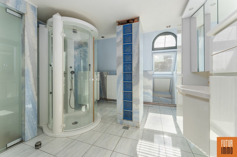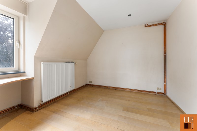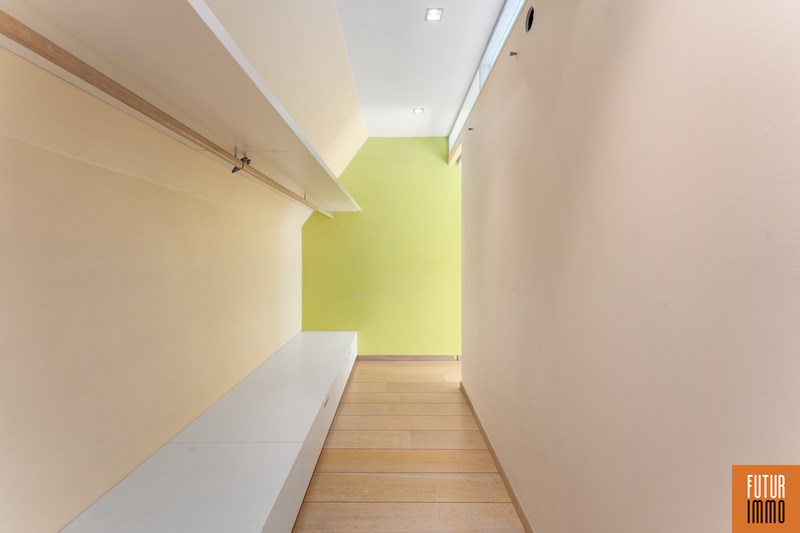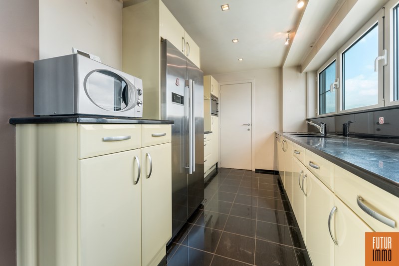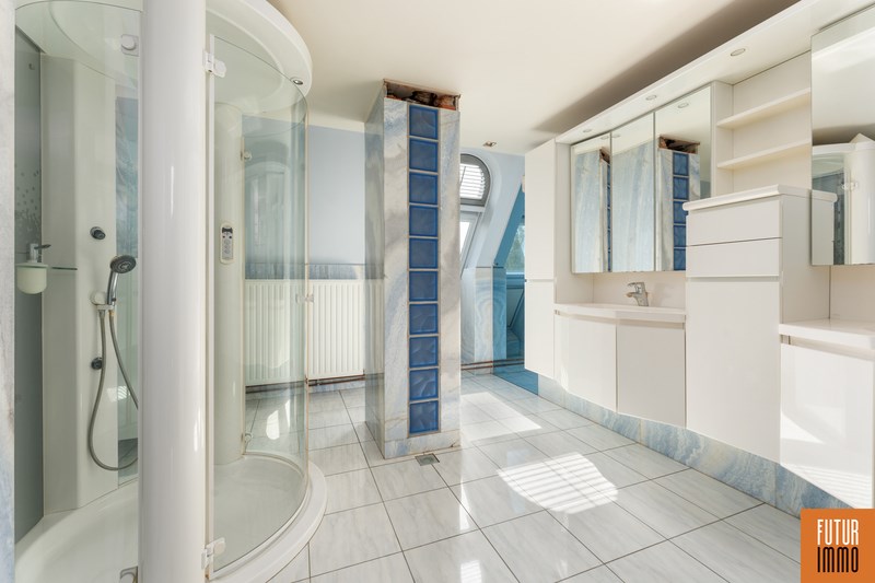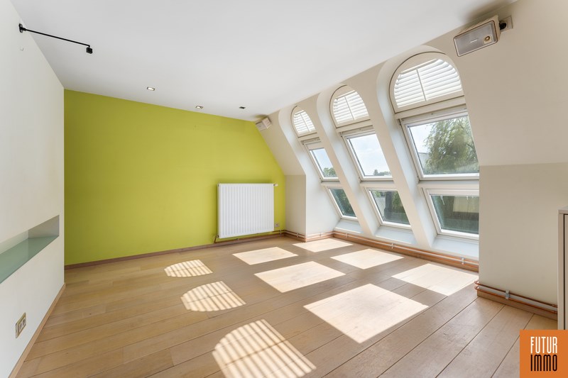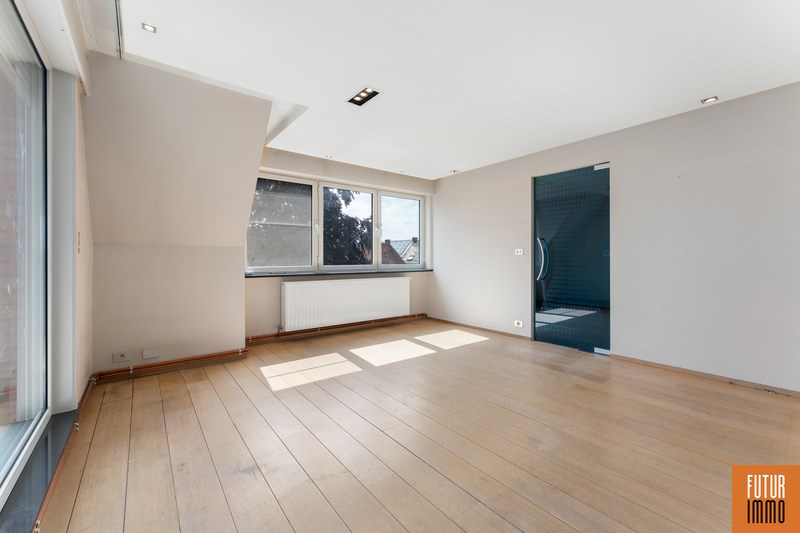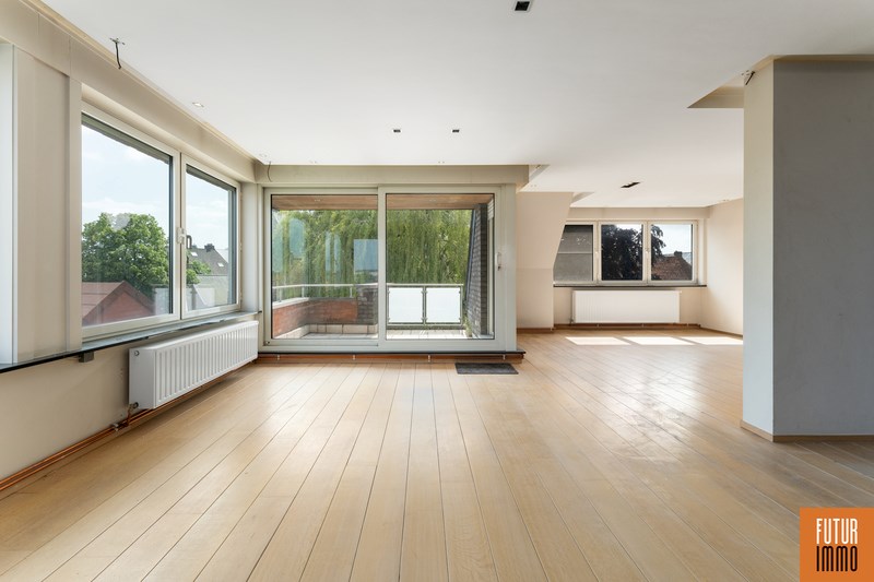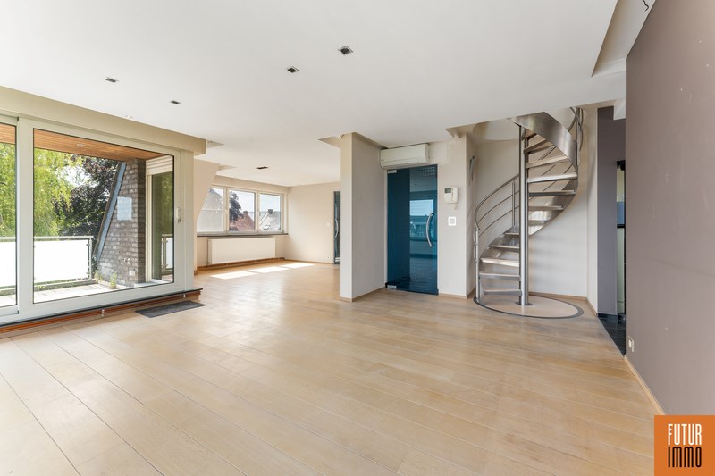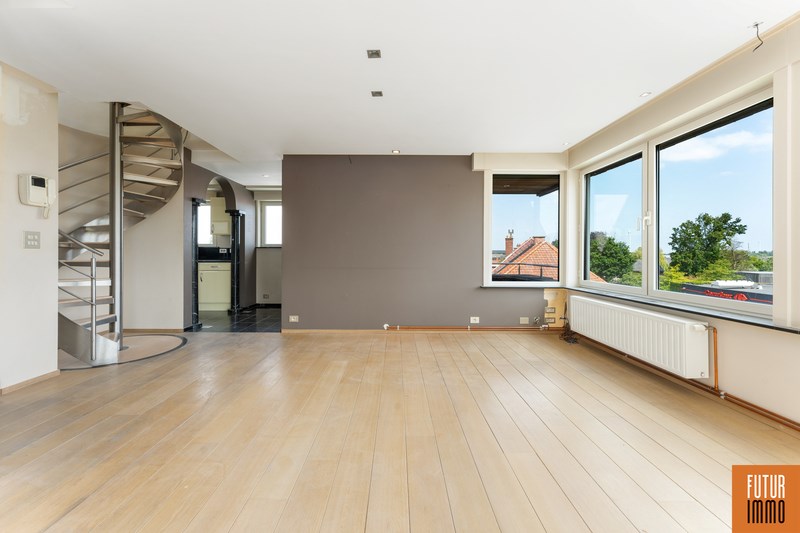 Het tweede niveau bereik je via een draaitrap (woonkamer) en omvat enerzijds een grote slaapkamer met dressing en inbouwkast, anderzijds een grote badkamer (douche, twee wastafels, toilet) en een extra balkon. Het appartement vraagt hier en daar wat licht opknapwerk maar heeft daarnaast heel wat troeven.