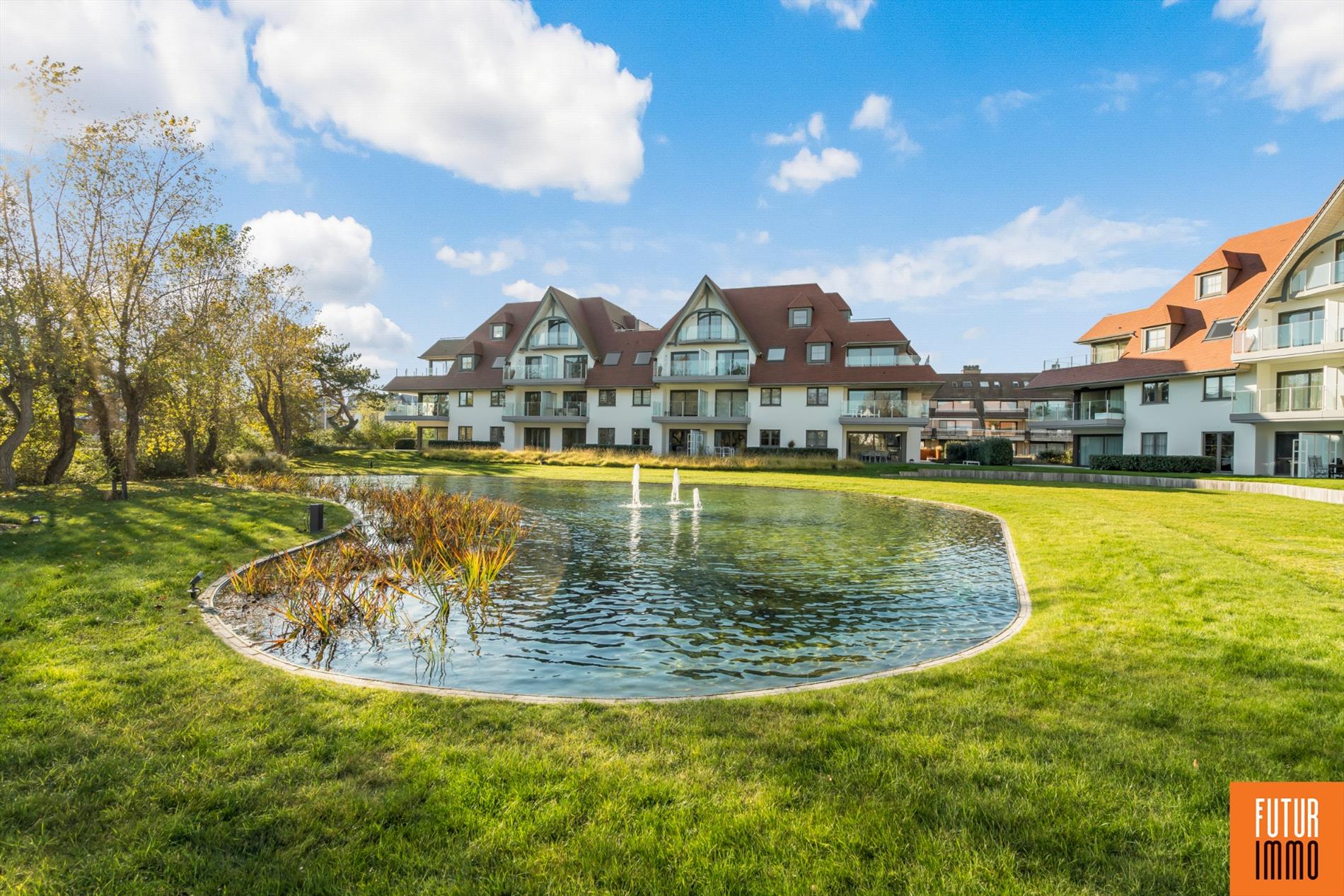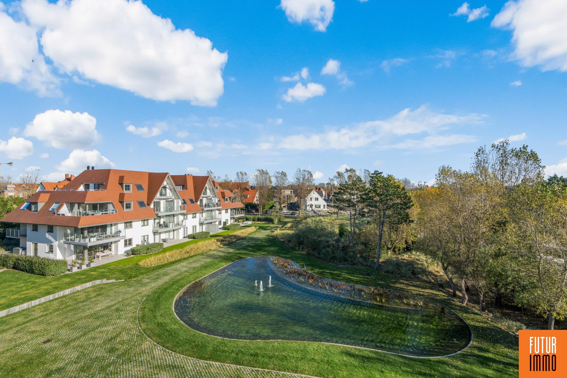 Het privé domein "Koningshof" bestaat uit 49 villa-appartementen en heeft een unieke locatie in Sint-Idesbald, op een boogscheut van de zeedijk (150 m) en op wandelafstand van het centrum. Er is een vlotte verbinding langs de kust met de kusttram en langs de nabij gelegen E40, geraakt u zowat overal. "Koningshof" is gelegen in een prachtig park van meer dan 1ha, ontworpen in de typische duinlandschapsarchitectuur met wisselende hoogtes. In de residentie heerst een oase van rust. Het unieke panoramische uitzicht via de extra grote zonneterrassen geeft zich uit op de centrale vijver.