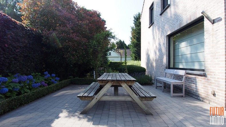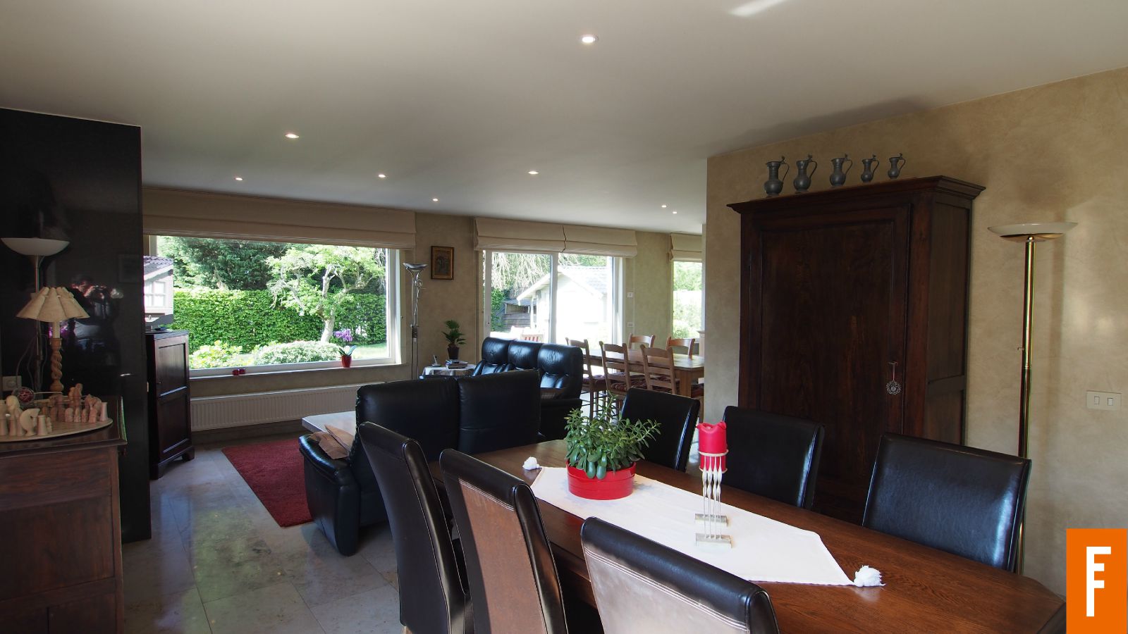 Grootse open 5-slaapkamervilla met GARAGE en omliggende TUIN. Het licht valt uitnodigend naar binnen via de vele raampartijen. Instapklare woning met buitenbergingen en zonneterrassen. Luchtige inkom met gastentoilet, living met inbouwcassette, keuken met fornuis voor de betere keukenprins(es), wasplaats, ruime garage. Op het verdiep: 5 slaapkamers, badkamer met ligbad en douche, apart toilet, ruime zolder. Regenwaterput, hoogrendementsketel, ...Totale opp.: 956m². Uitstekend gelegen woning met gewaarborgde PRIVACY voor zijn bewoners. EPC 204 KWh/m².