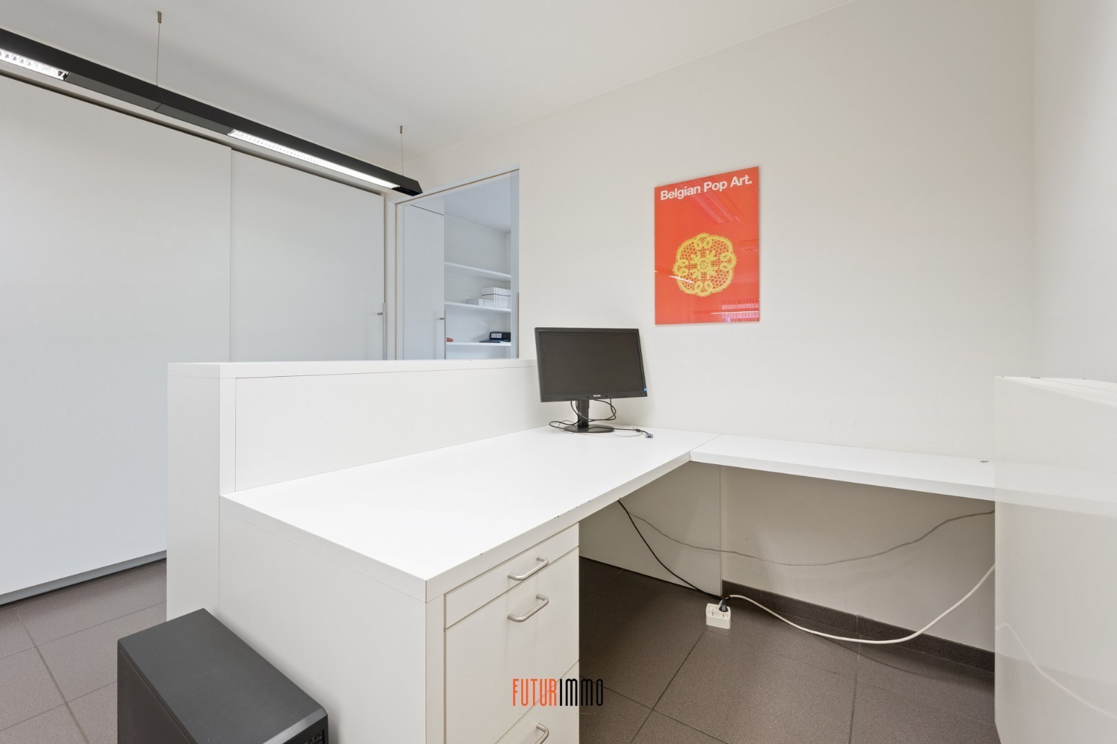 Ze deed altijd dienst als kantoor en is op heden nog steeds zo ingericht. Dezelfde bestemming kan voortgezet worden, maar ze leent zich ook perfect om als praktijkruimte in te richten (logopedie, dokterspraktijk, schoonheidszorgen, strijk/naaiatelier, studio,... Er is 168m² aan bruikbare vloeroppervlakte.