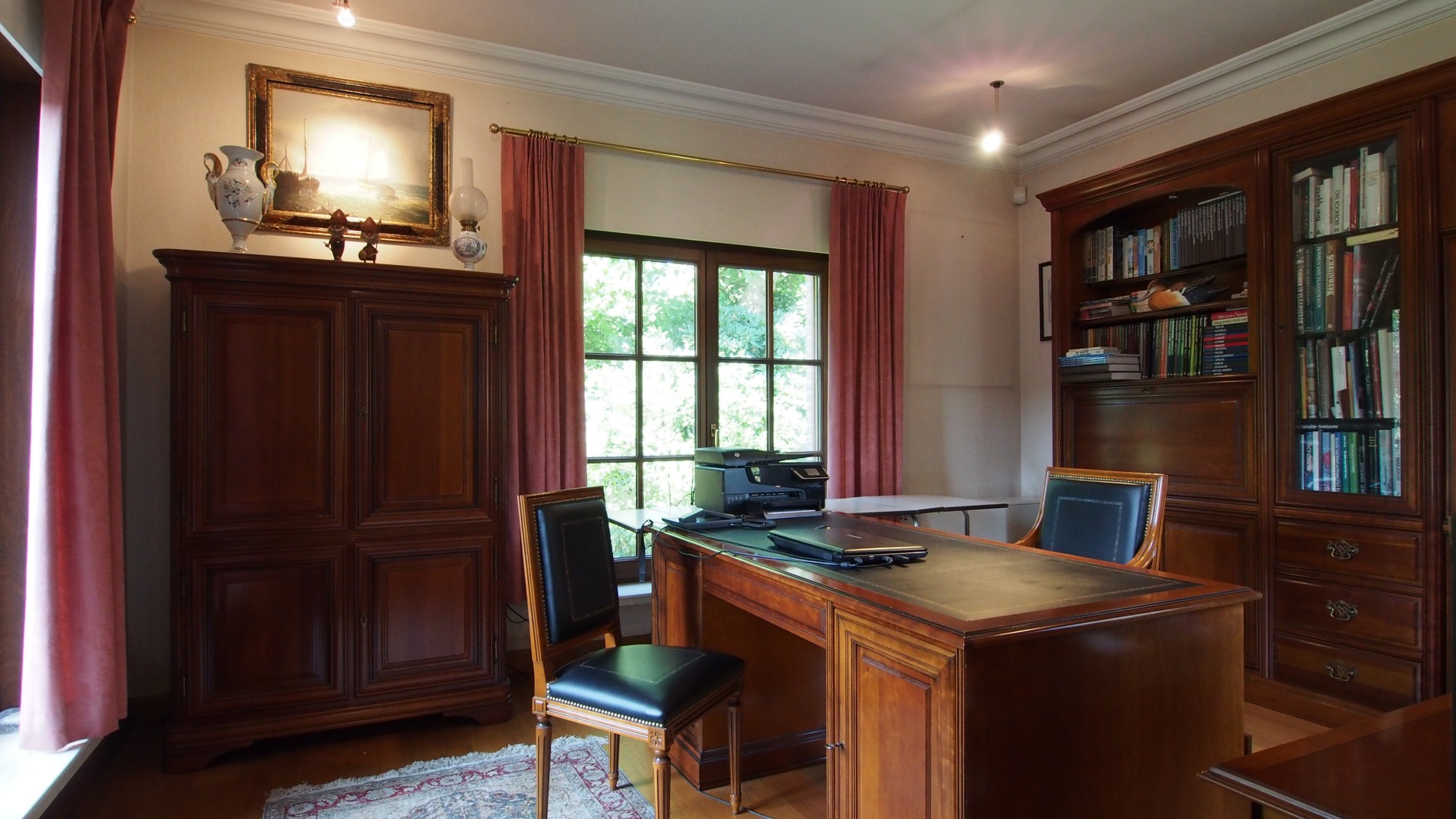 Deze villa op 2.722 m² grond is landelijk en toch residentieel gelegen. U betreedt de woning via de ruime inkomhal (met gastentoilet). Aansluitend, kunt u links naar de ruime living (met aansluitend een bureauruimte), rechts vindt u een dubbele garage met stapelruimte. Na de living komt u in de ruime leefkeuken. Vanuit de keuken heeft u toegang tot de bijkeuken, 2 slaapkamers en badkamer. De badkamer is ingericht met een ligbad, douche, dubbele lavabo en toilet. Op het verdiep heeft u toegang tot nog 2 slaapkamers, een extra polyvalente ruimte en een zolder. Ook is er een mooie droge kelder aanwezig. Alle ramen voorzien van rolluiken, dubbel glas, eiken vloeren, natuursteen, regenwaterput 21.000 liter. Kortom, een topper van formaat.
