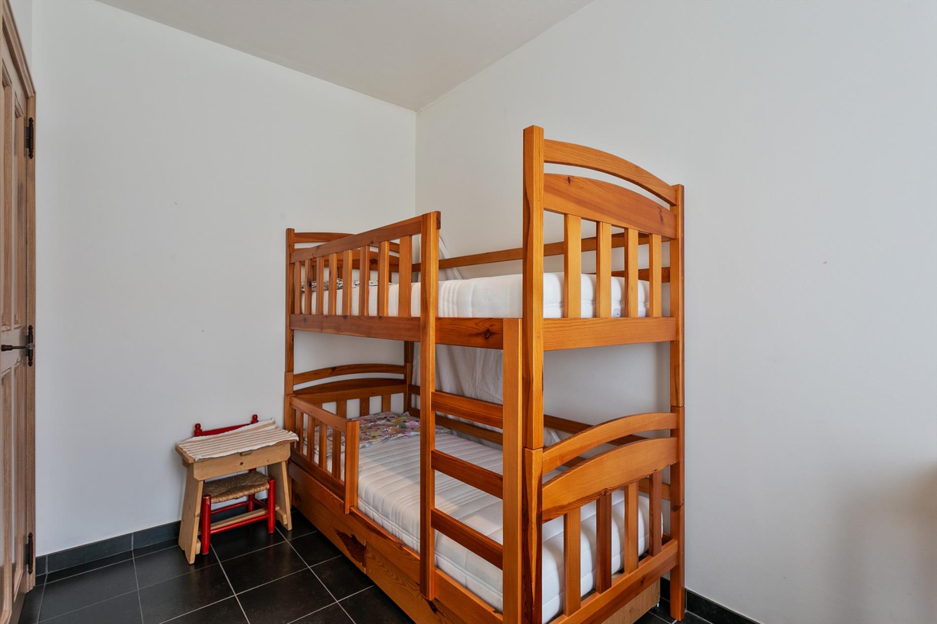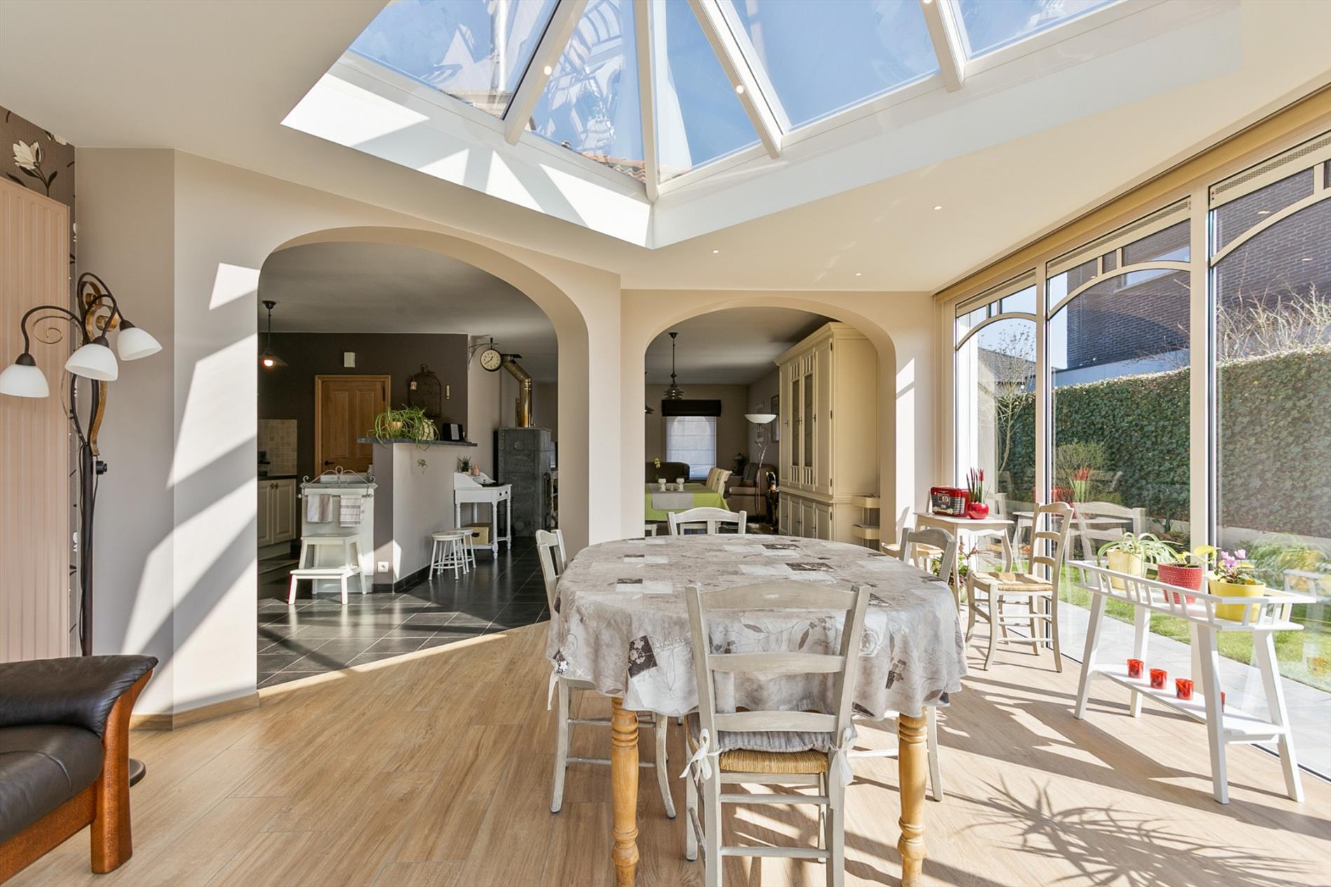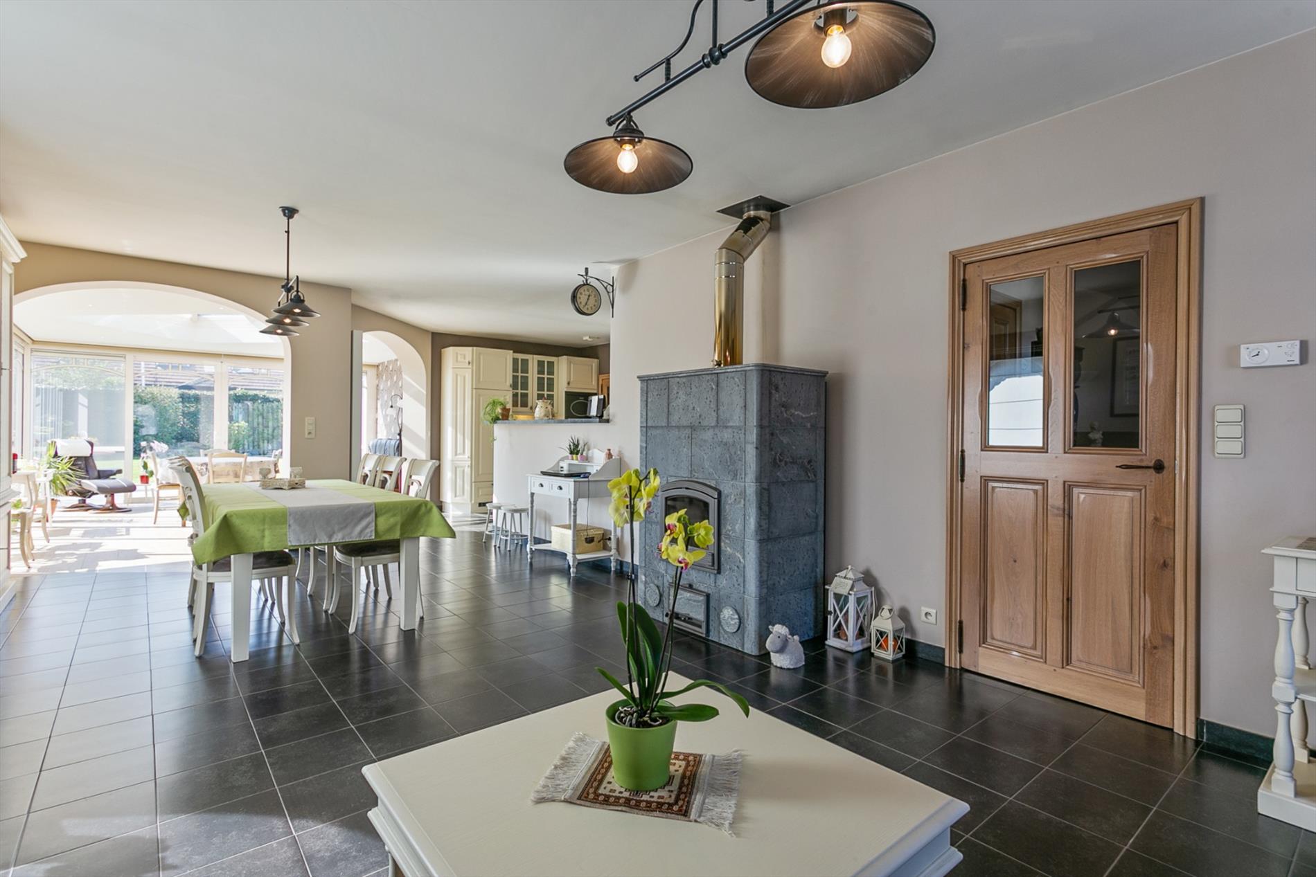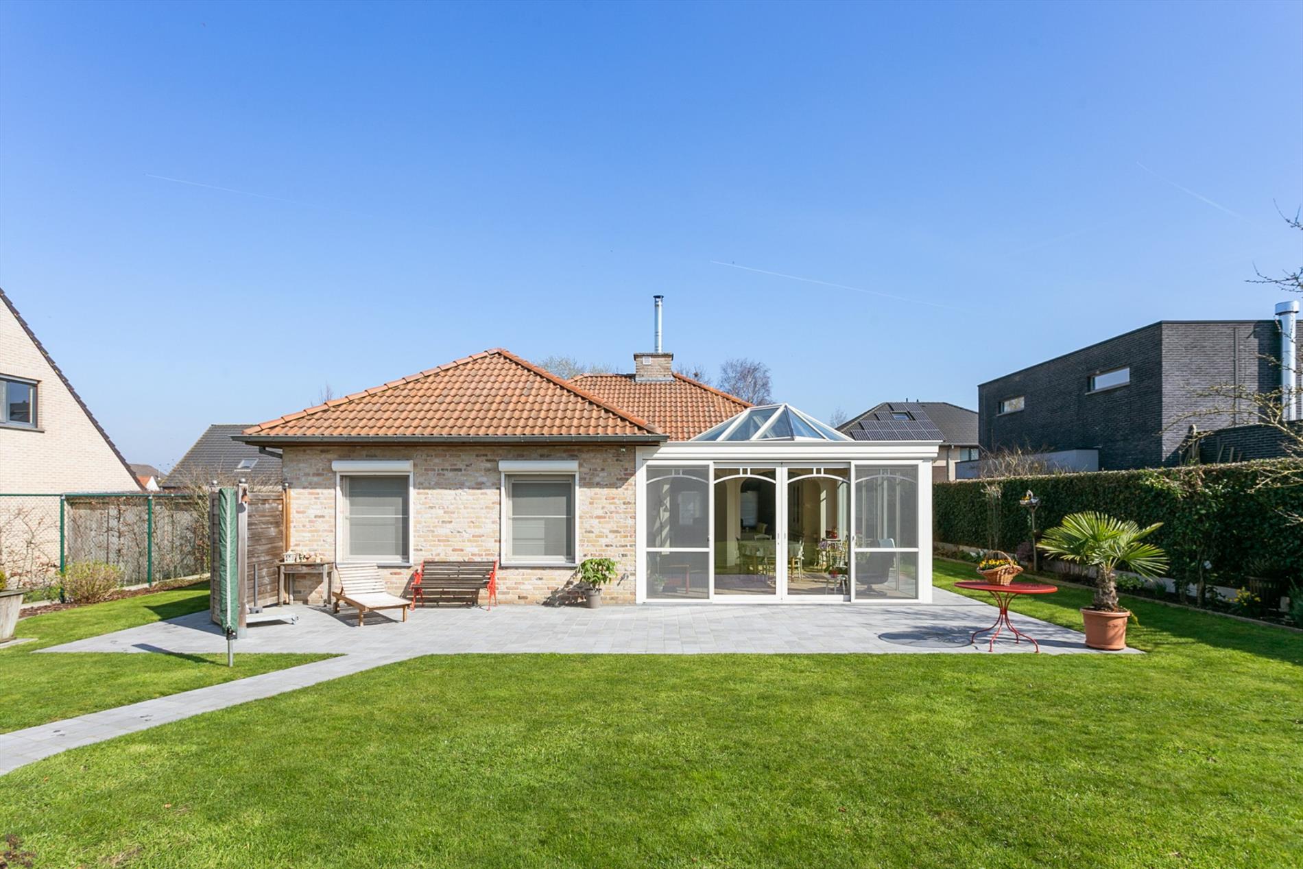 EEN UITNODIGEND GEHEEL – Deze 2-slaapkamervilla met dressing ademt RUIMTE & RUST uit. Tot. grondopp. 666 m². Leuk woonvolume door o.a. een inkomhall, gastentoilet, ruime living met speksteenkachel (optimaal rendement en sfeervolle warmte), lichtrijke uitbouw zorgt voor optimaal contact tussen de aangelegde tuin en leefruimte, ingerichte kwalitatieve open keuken met grote berging, luxueuze badkamer, ruime bergzolder en garage, terras, tuinhuis,… goedgekeurde elektriciteit, dubbele beglazing, CV op gas, ZONNEPANELEN. Mooie woonperspectieven met optimale privacy.