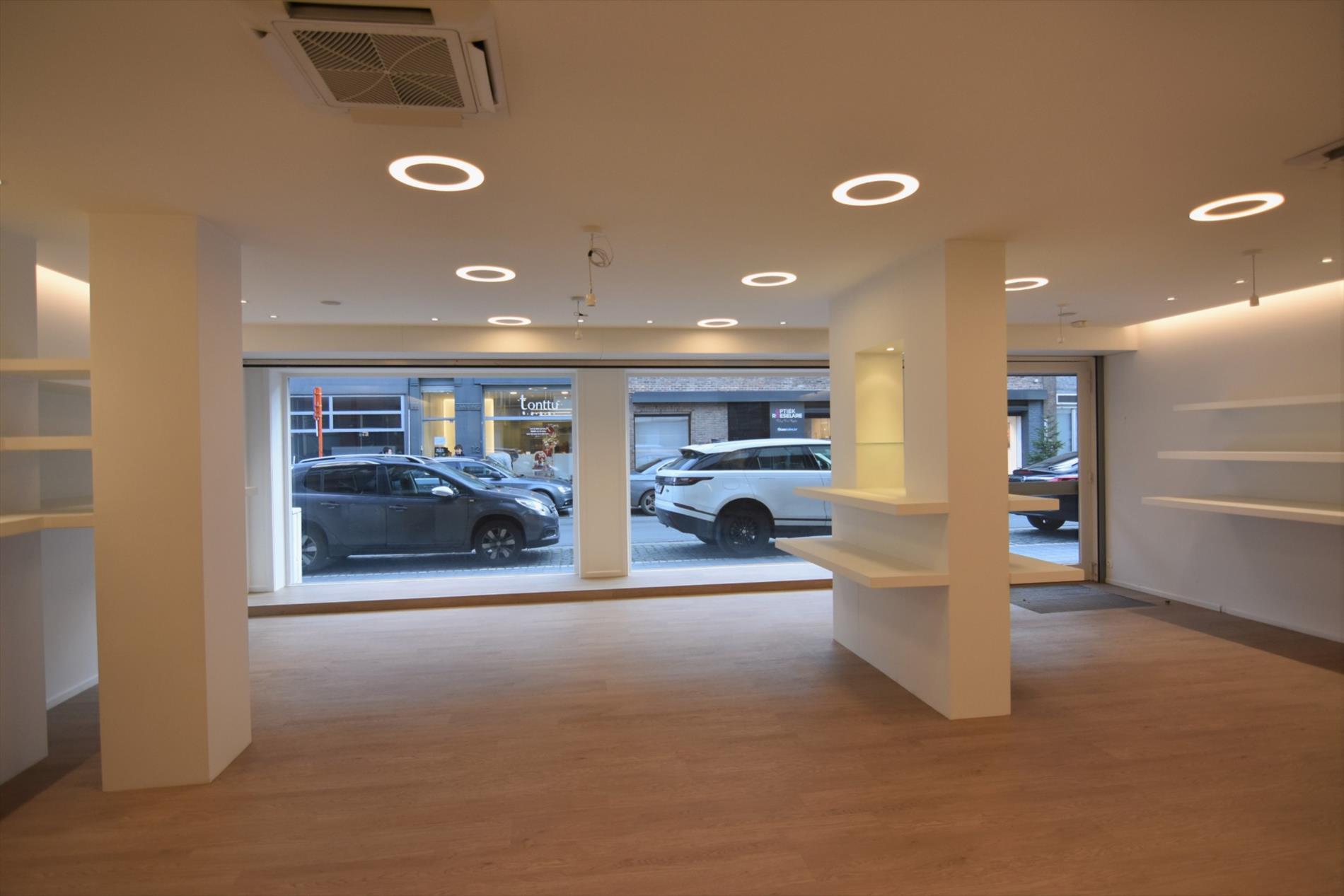 Dit recent vernieuwd handelsgelijkvloers vinden we in de Sint-Amandsstraat, gelegen midden in het centrum van Roeselare.