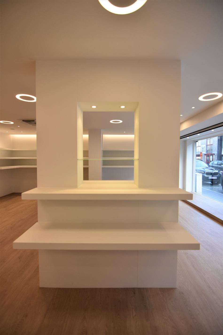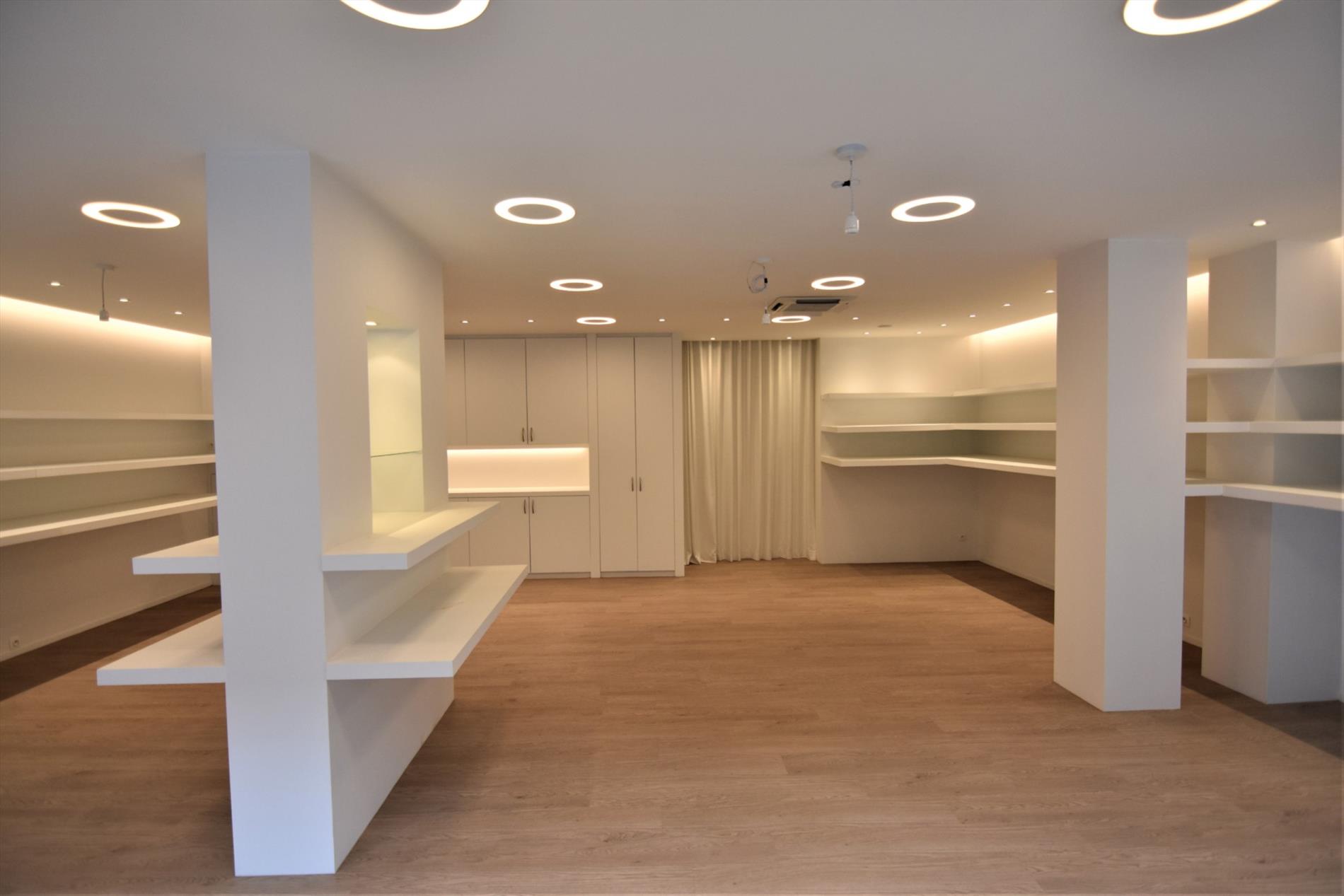 Passende sfeerverlichting geven het handelsgelijkvloers een gezellige en luchtige sfeer.