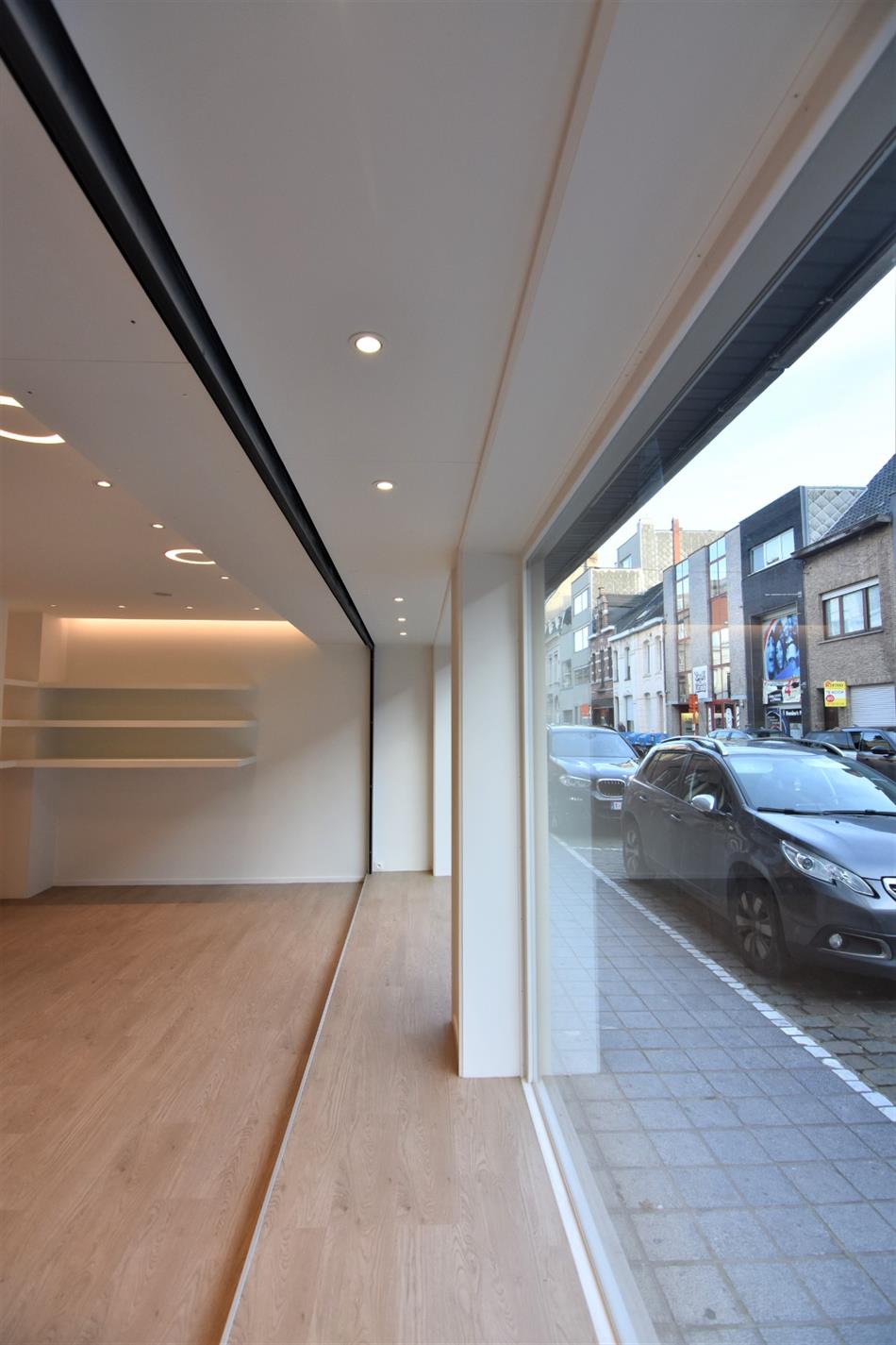 De commerciële ruimte heeft een bruikbare oppervlakte van +- 90 m² en omvat een open (winkel)ruimte, voorzien van praktisch maatwerk alsook een opvallende etalage van maar liefst zeven meter, over gans de breedte voorzien van een rolluik.