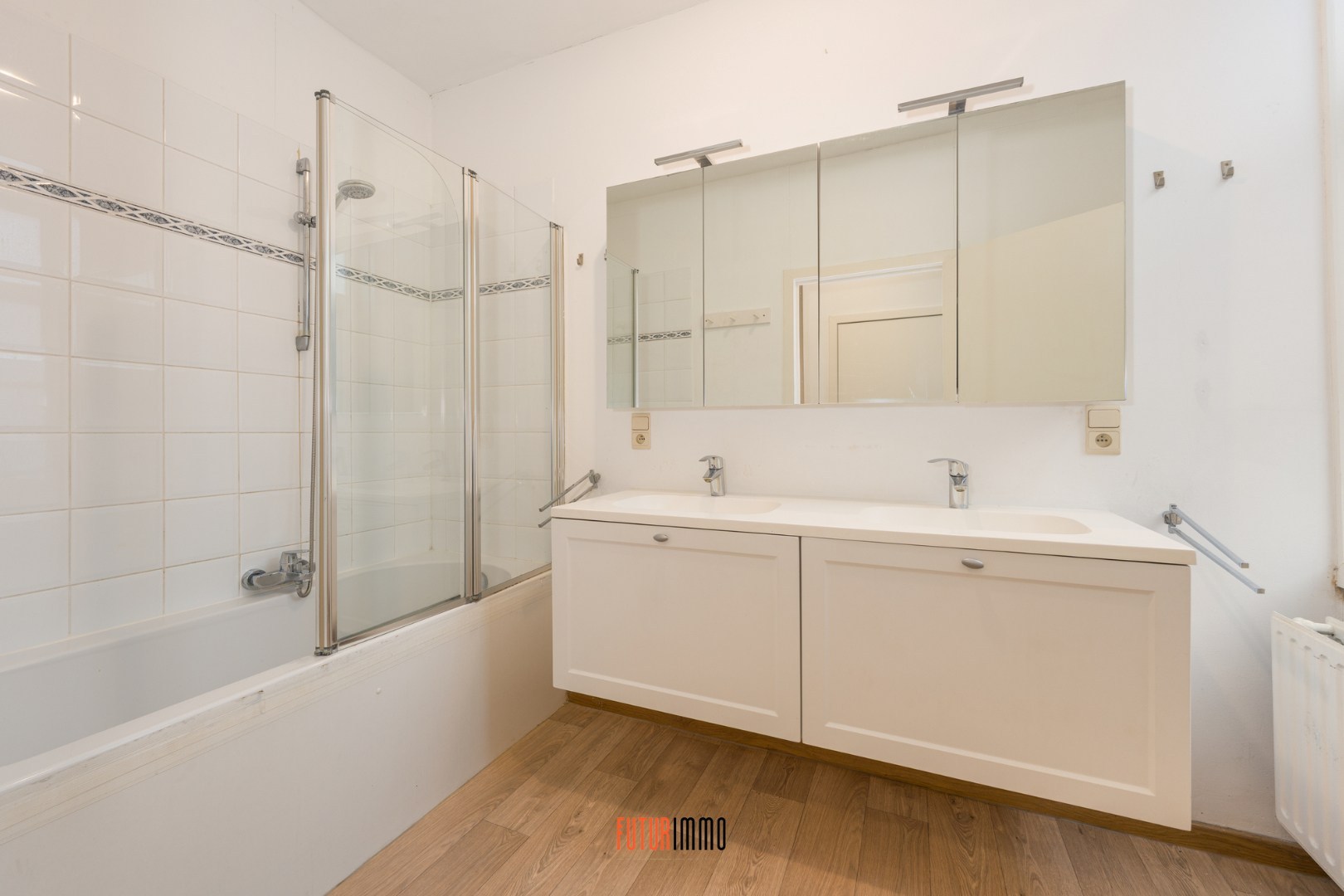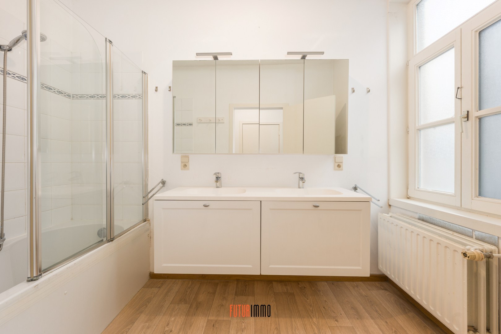 Eerste verdieping: ruime slaapkamer en badkamer (dubbele lavabo - ligbad/douche), toilet apart op de nachthal.