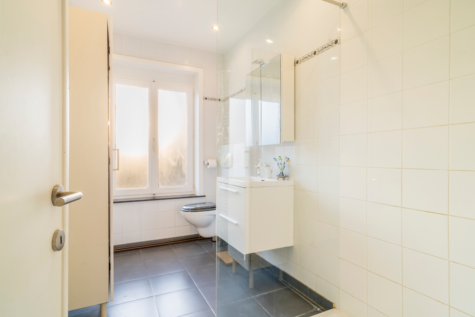 +1: nachthal - badkamer (inloopdouche, wastafel, toilet) - 2 ruime slaapkamers