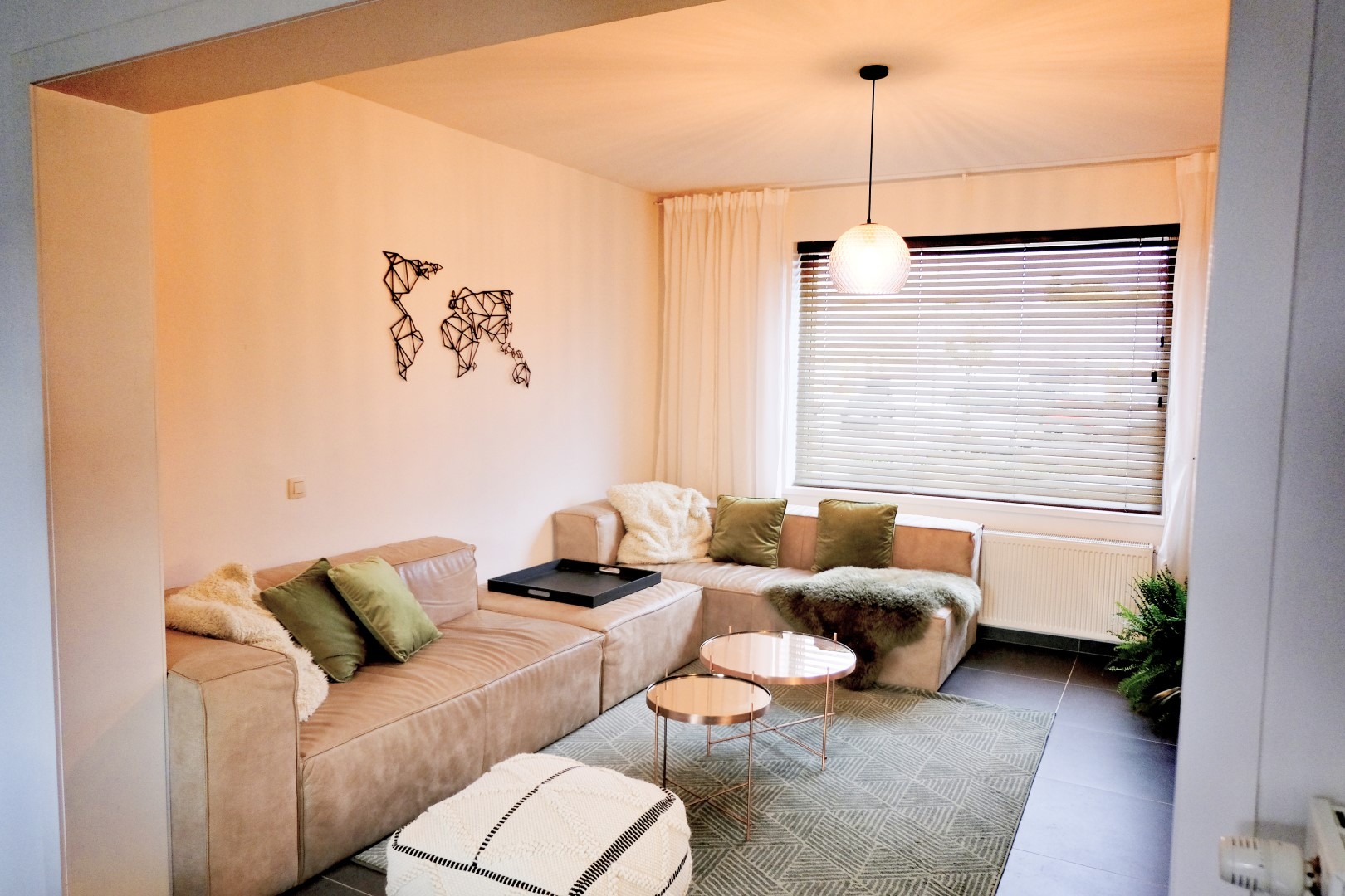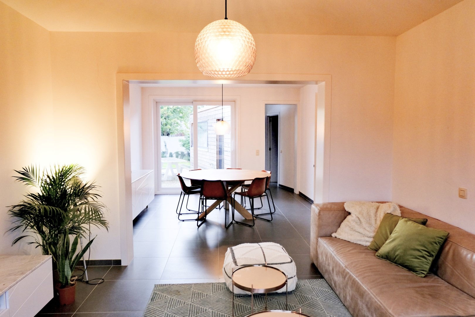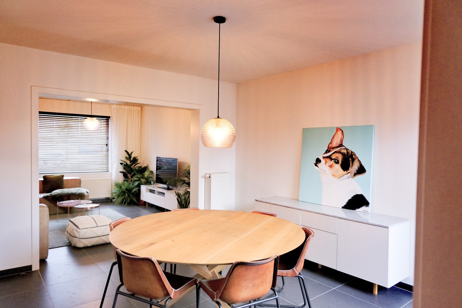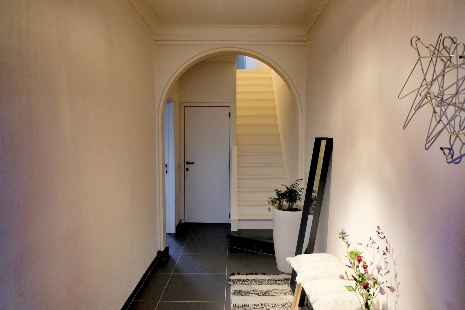 In 2015 onderging de woning een grondige vernieuwing en werd omgebouwd tot een lichtrijke, sfeervolle woonst, omvattende een inkomhal met gastentoilet en trap naar de eerste verdieping.