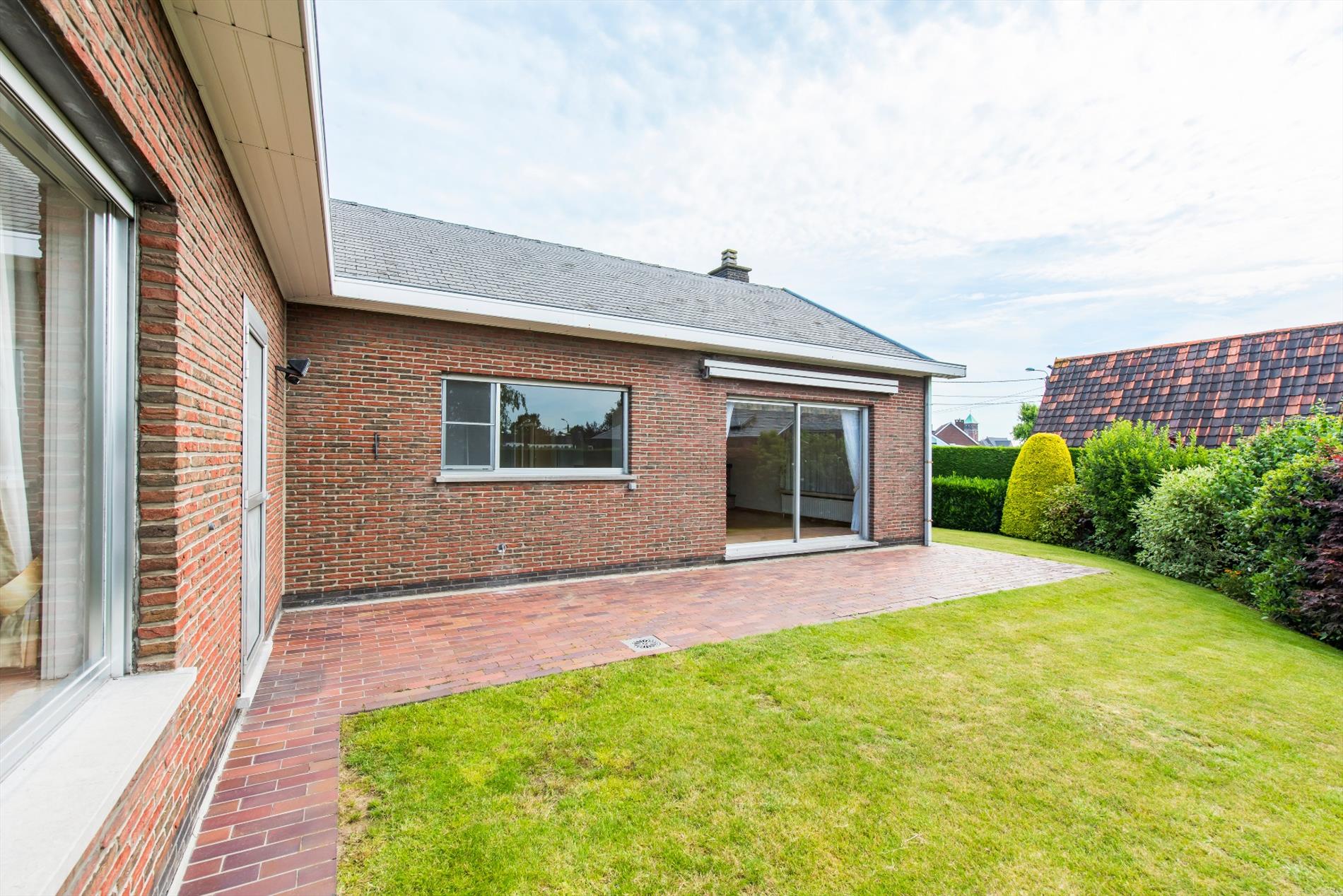 De voornaamste ruimtes geven uit op de zon gerichte tuin, die ook voorzien is van een praktisch tuinhuis (8m²) en een gezellig terras (met zonneluifel).