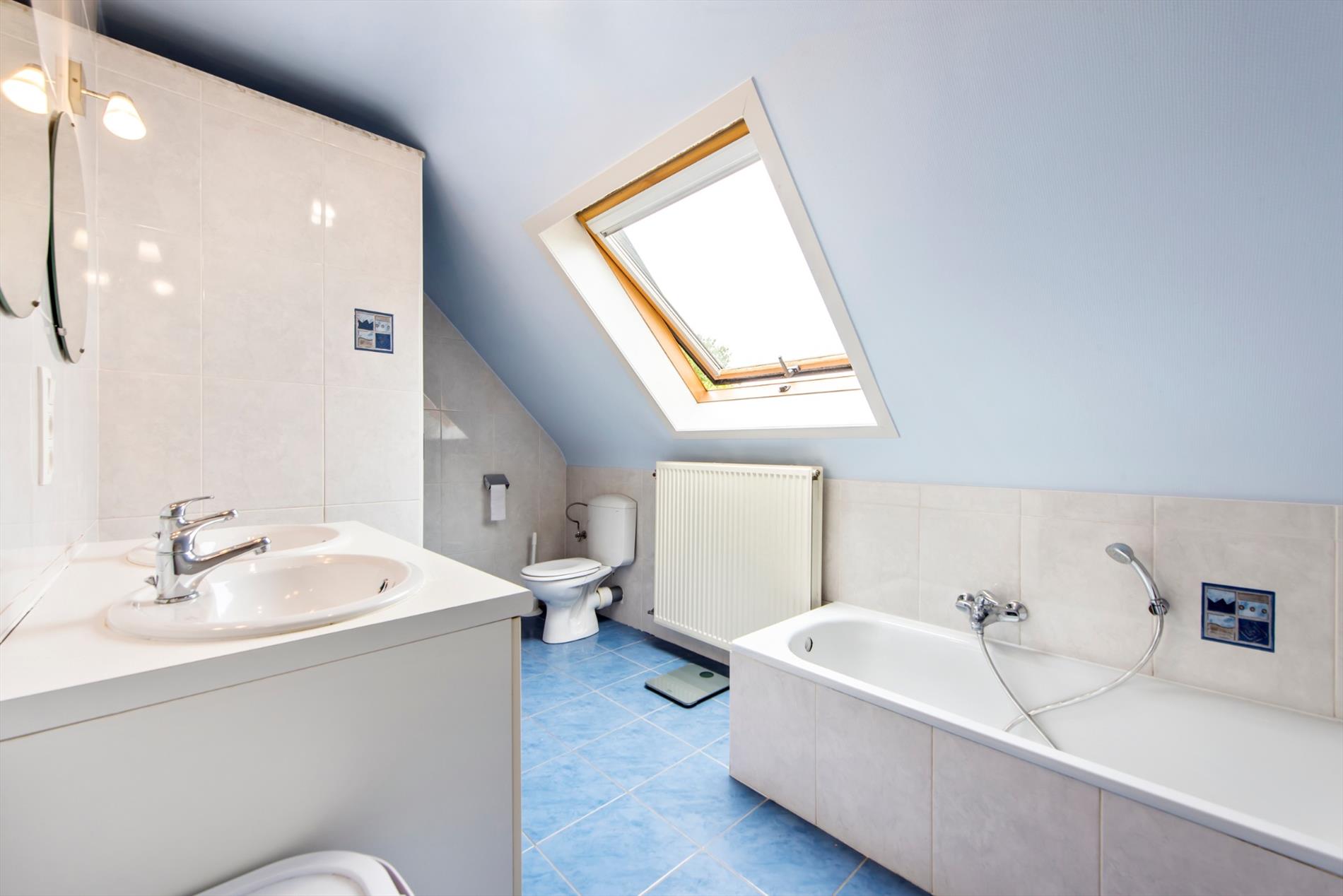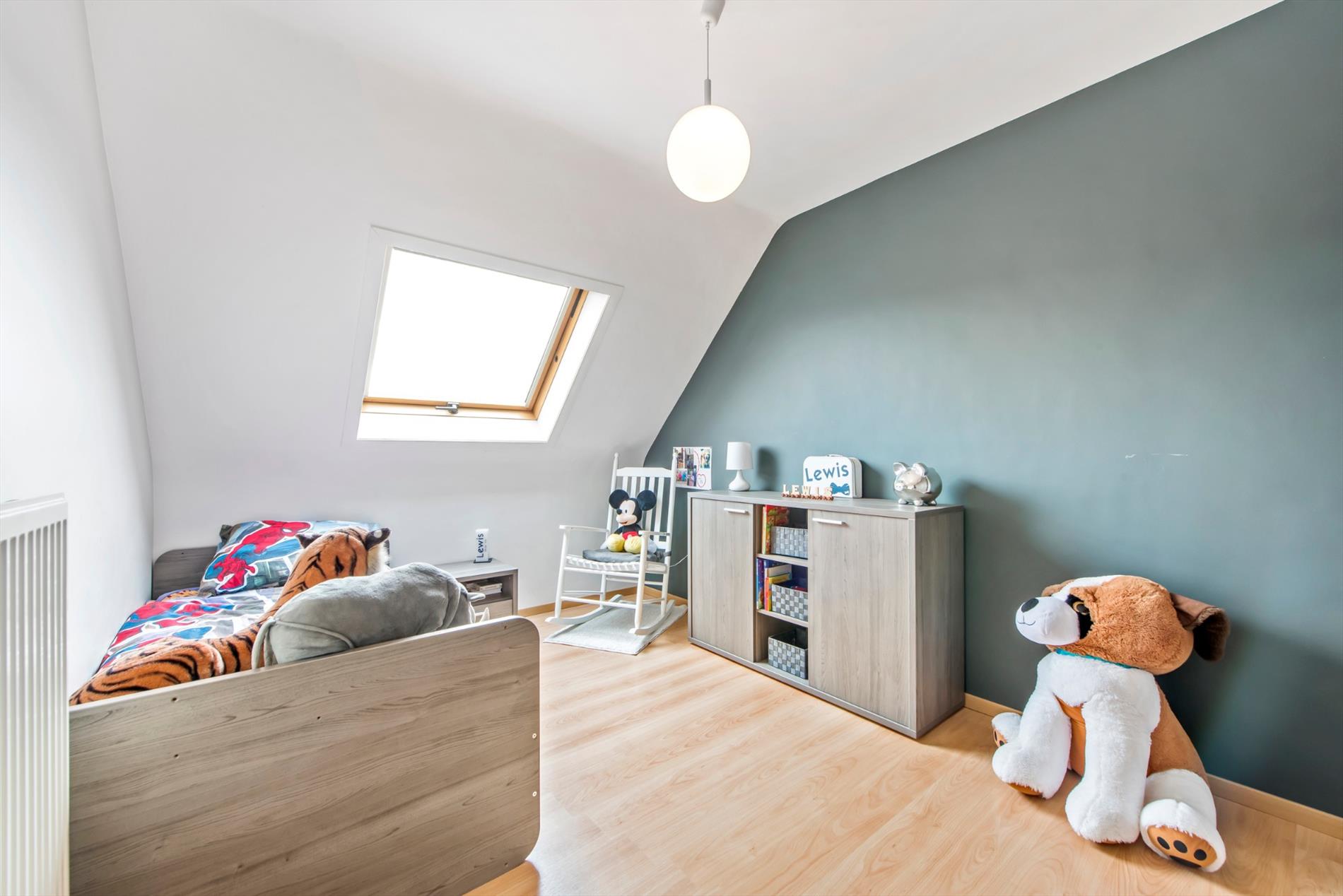 Op de verdieping vinden we drie slaapkamers en een badkamer (ligbad - douche - toilet - dubbele wastafel).