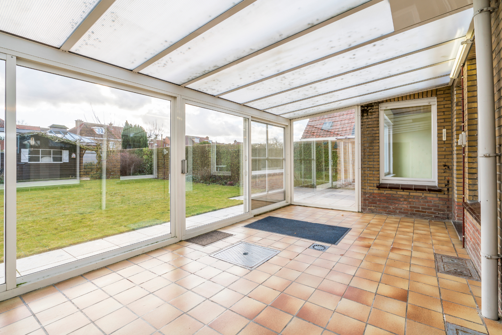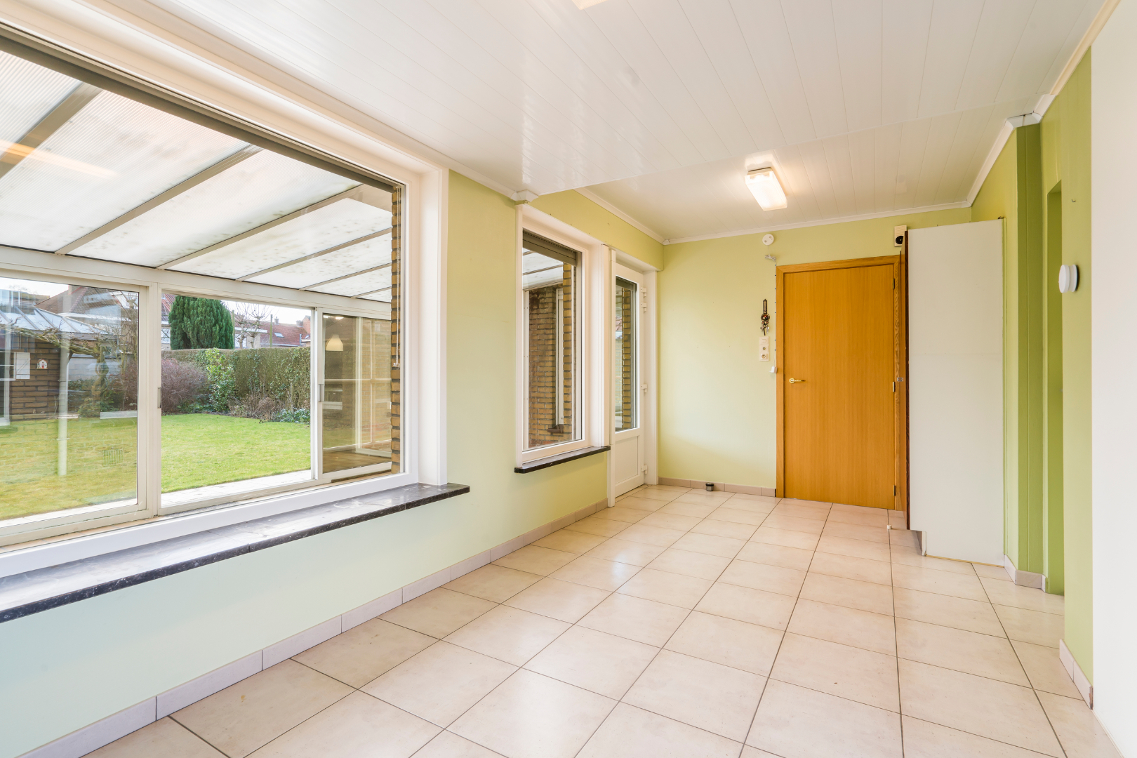 inkomhal met vestiaire - trap met toilet op tussenverdiep - woonkamer met houtcassette - ruime leefkeuken met toegang tot droge kelder - handige garage met extra zoldering (biedt opties!) - aangebouwde veranda.