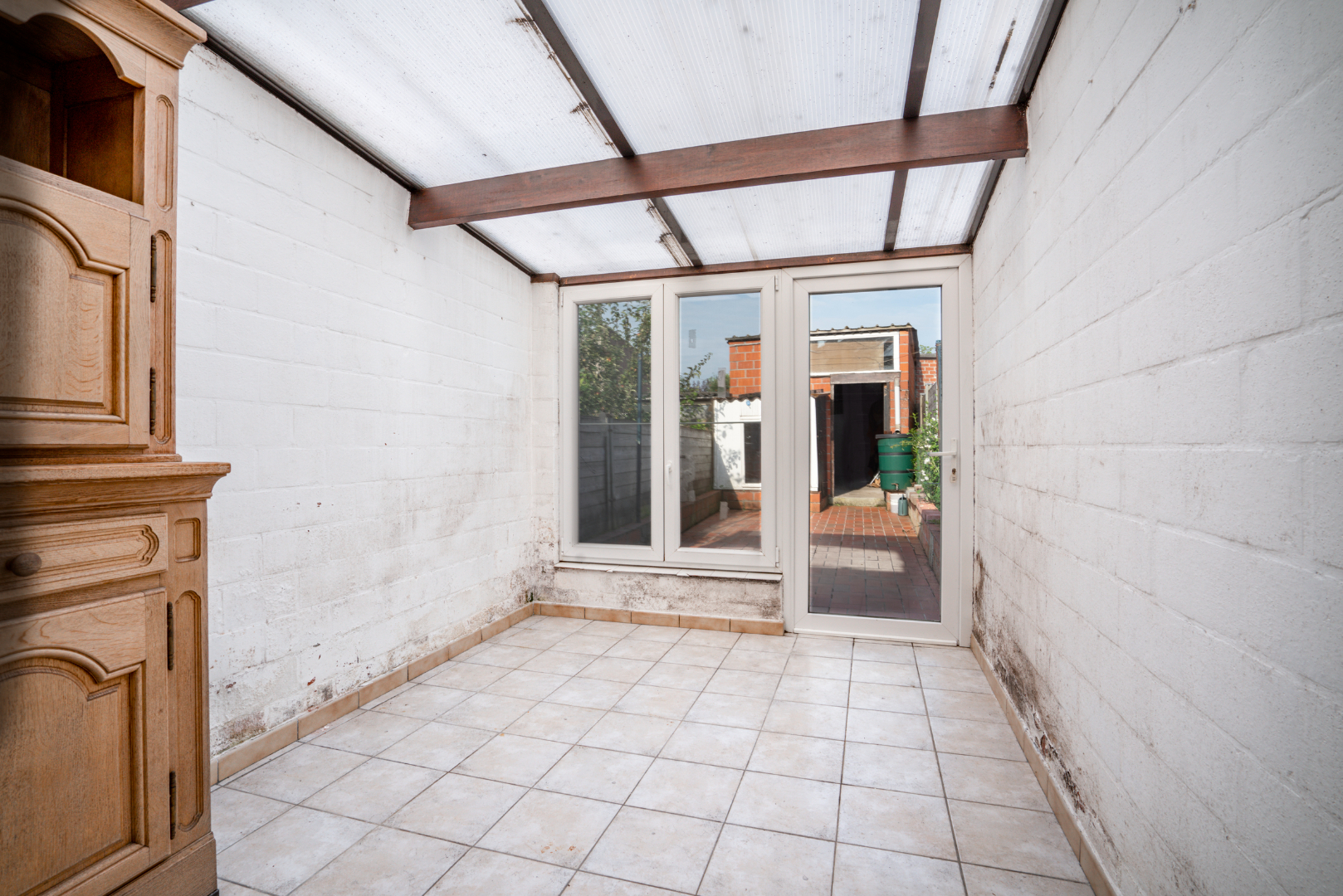 Deze deels te renoveren woning mét achterliggende garagebox, is gelegen op een belangrijke invalsweg op een paar honderd meter van het Sterrebos en de Rijksweg. Op te frissen maar oa. dankzij een vaste trap naar de zolder met heel wat mogelijkheden en stevige structuur (betonnen gewelven). Reeds vernieuwde elektriciteit + ramen! Goed onderhouden.