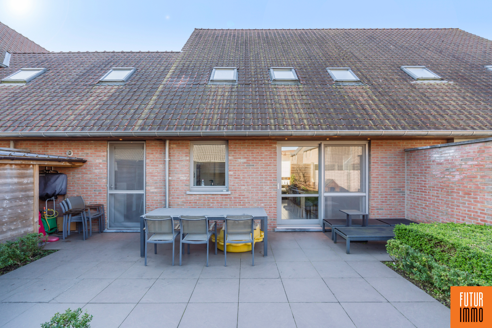 EXTERIEUR: gezellig en zeer ruim terras - op maat gemaakte tuinberging