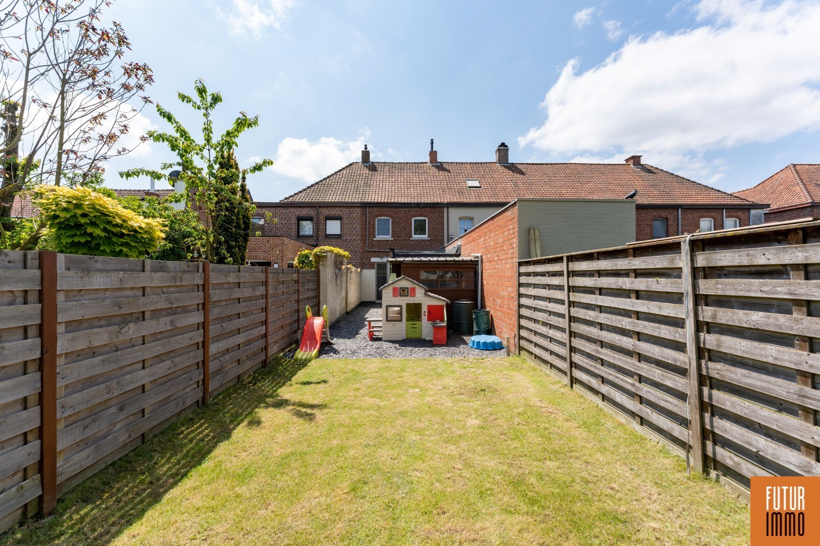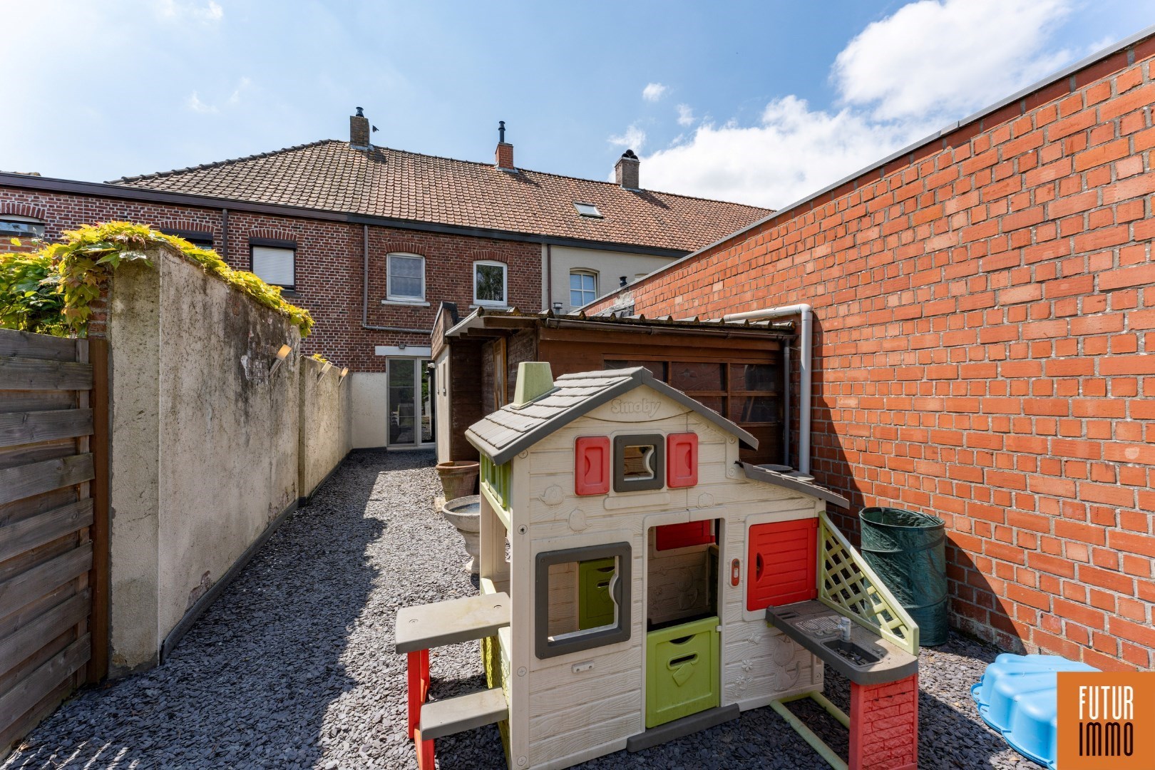 EXTERIEUR: gezellige tuin met terras en tuinberging (nieuwe tuinafsluiting) - voldoende parking in de straat