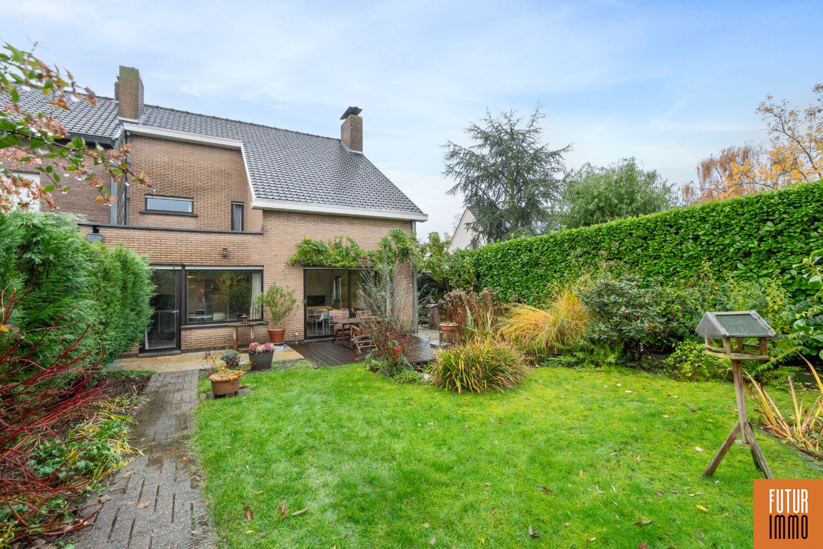 EXTERIEUR: de tuin biedt rust, privacy en vooral een zongerichte oriëntatie (W) - voorzien van een tuinhuis - genieten en uitblazen doe je vanop een van de 2 terrassen