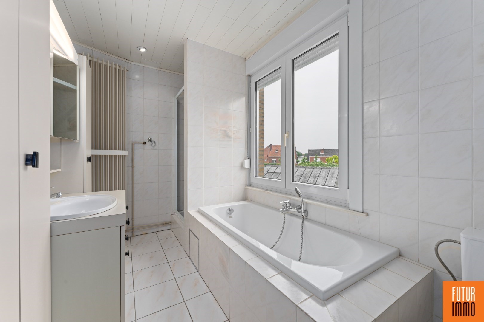 Er bevindt zich bovendien nog een gezellig zongericht tuintje alsook praktische uitweg achter de grote garage met parkeermogelijkheden. (uitweg via Rumbeeksesteenweg én Rozenstraat).