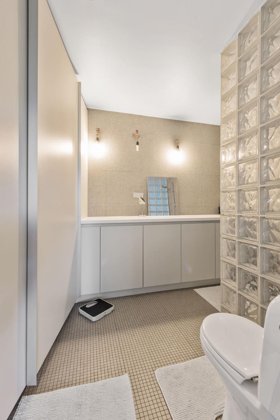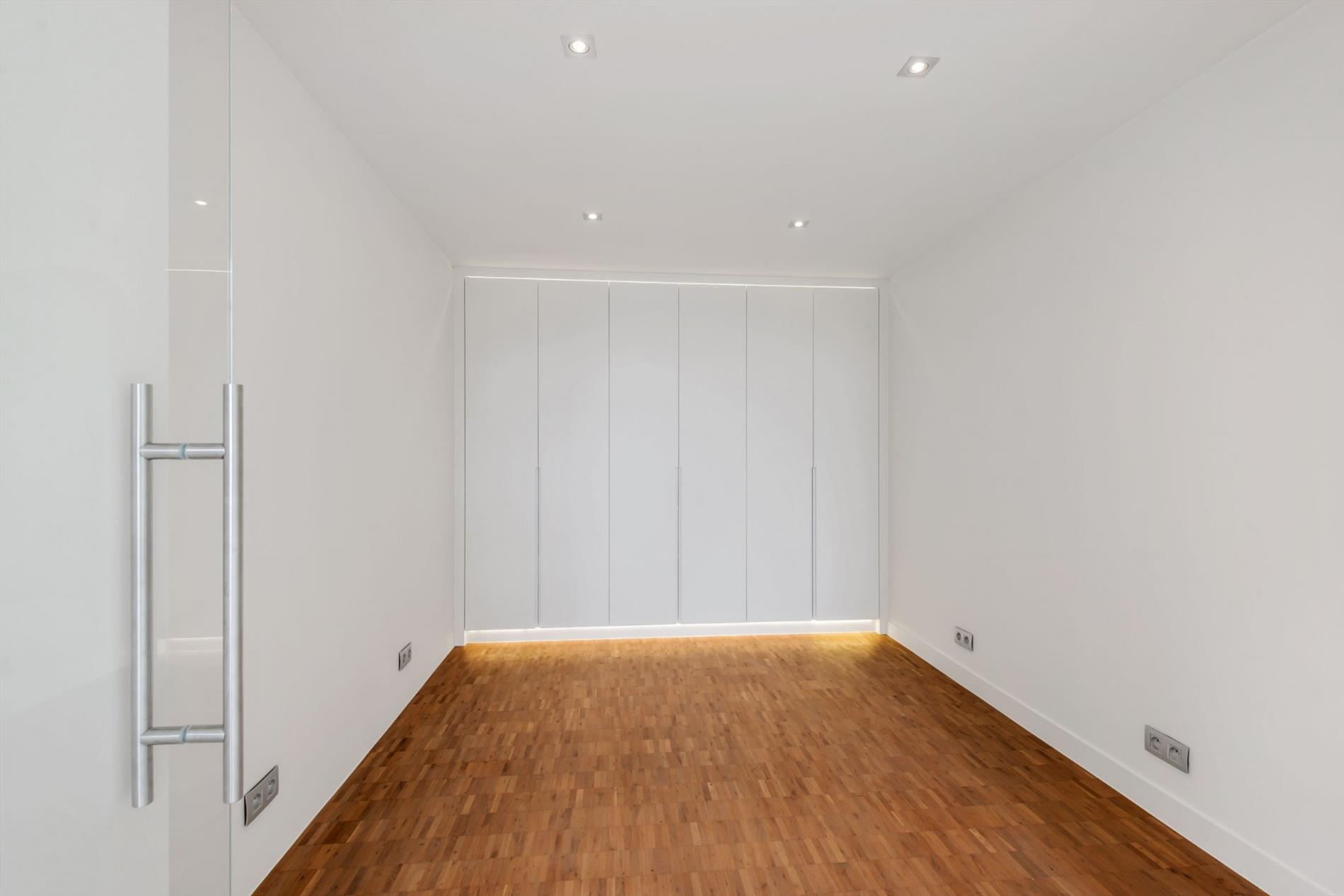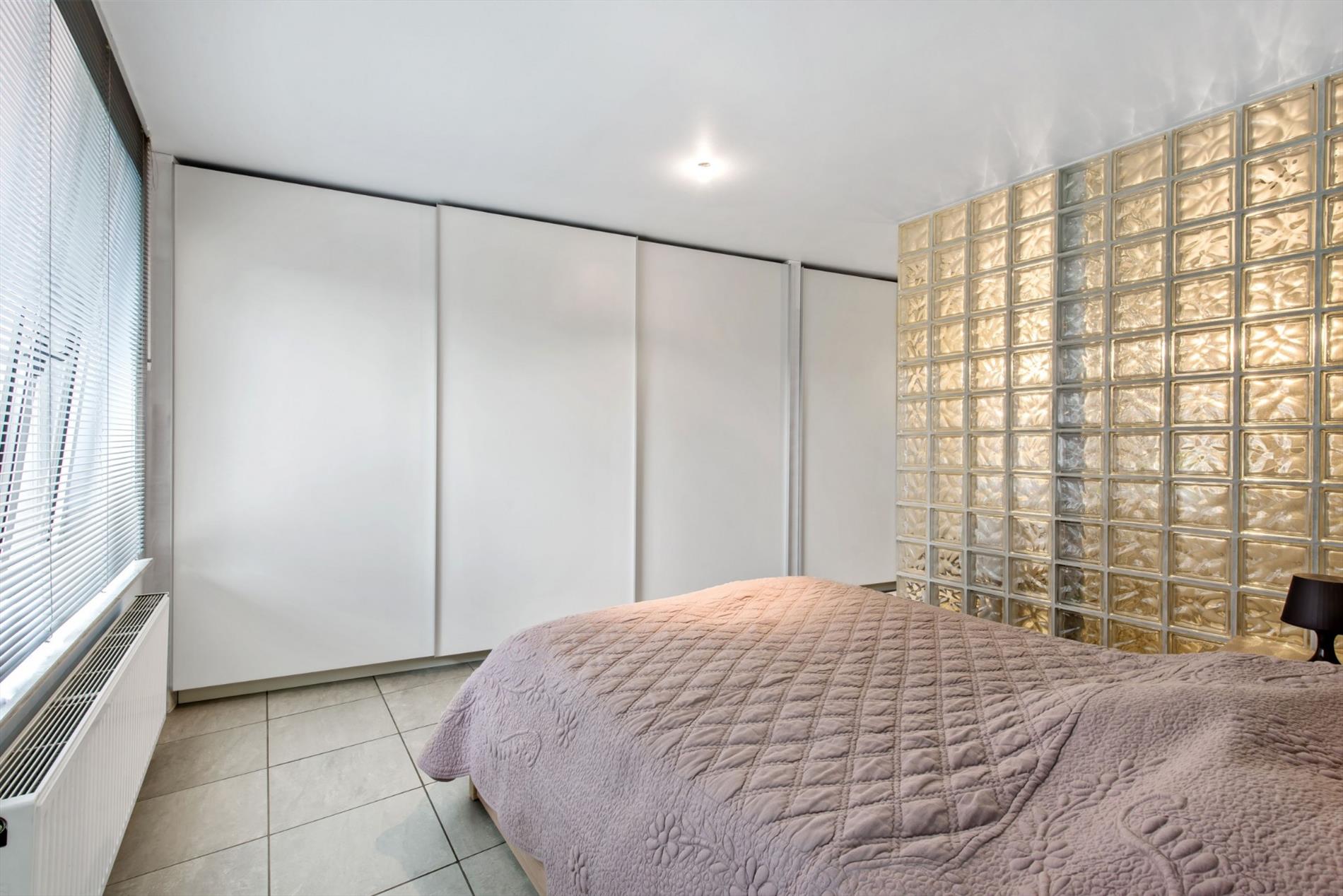 Verder is er een ruime gelijkvloerse slaapkamer met onder meer inbouwkasten, toilet en inloopdouche. Van hieruit is er eveneens toegang tot een droge kelder.