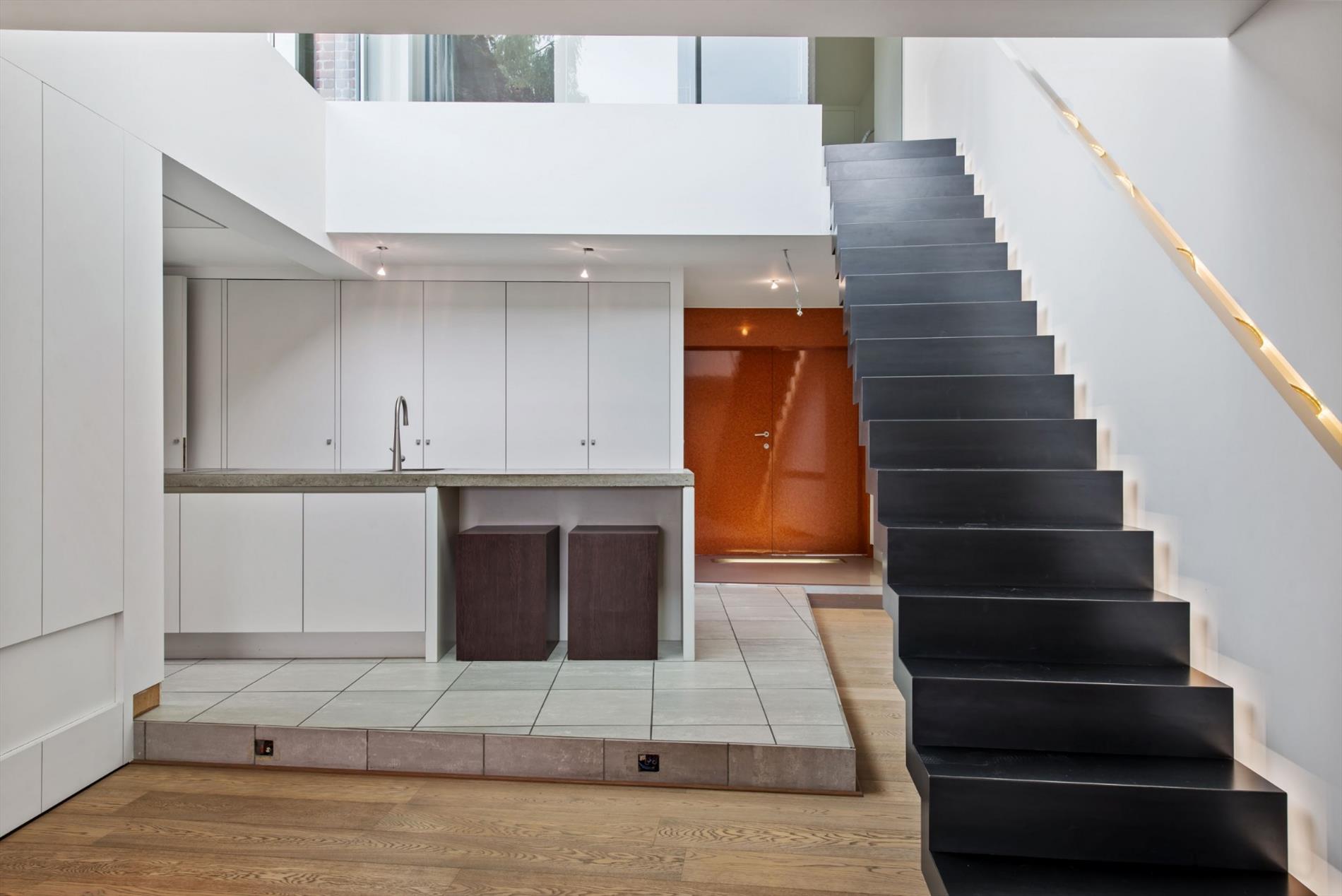 Deze unieke stadswoning geniet van een mooie zon gerichte binnentuin mét directe toegang tot het achterliggende plein.