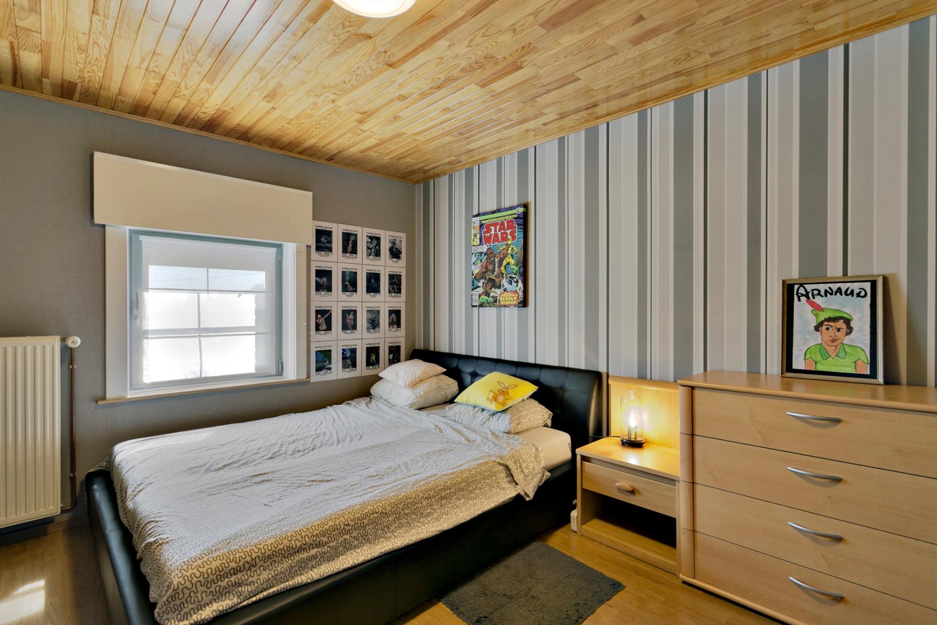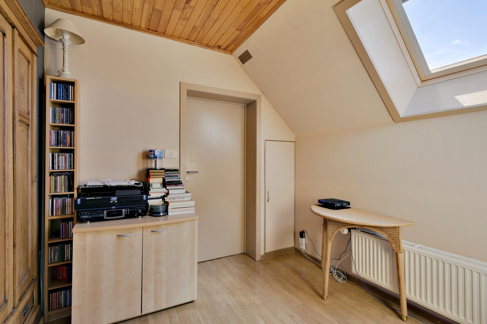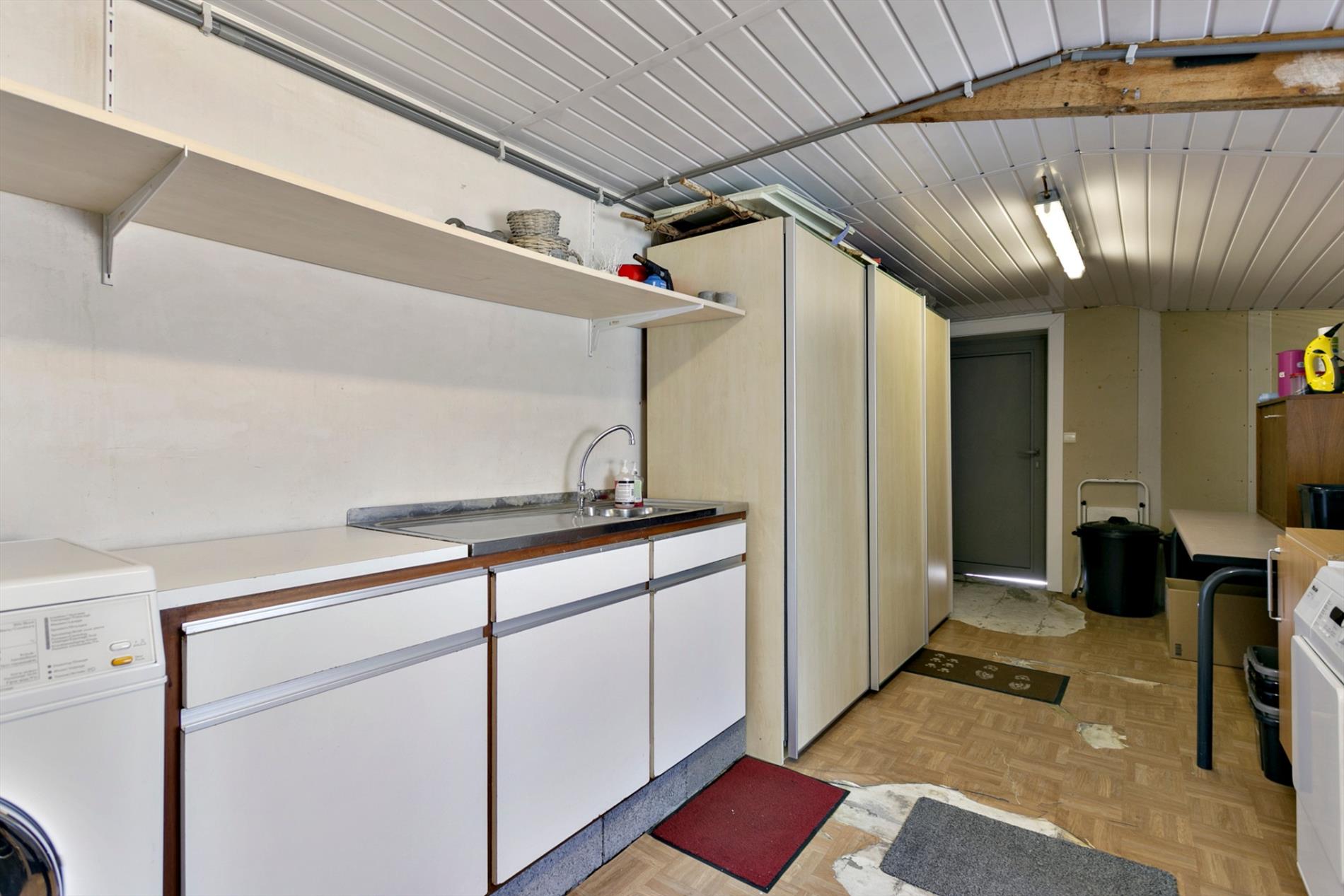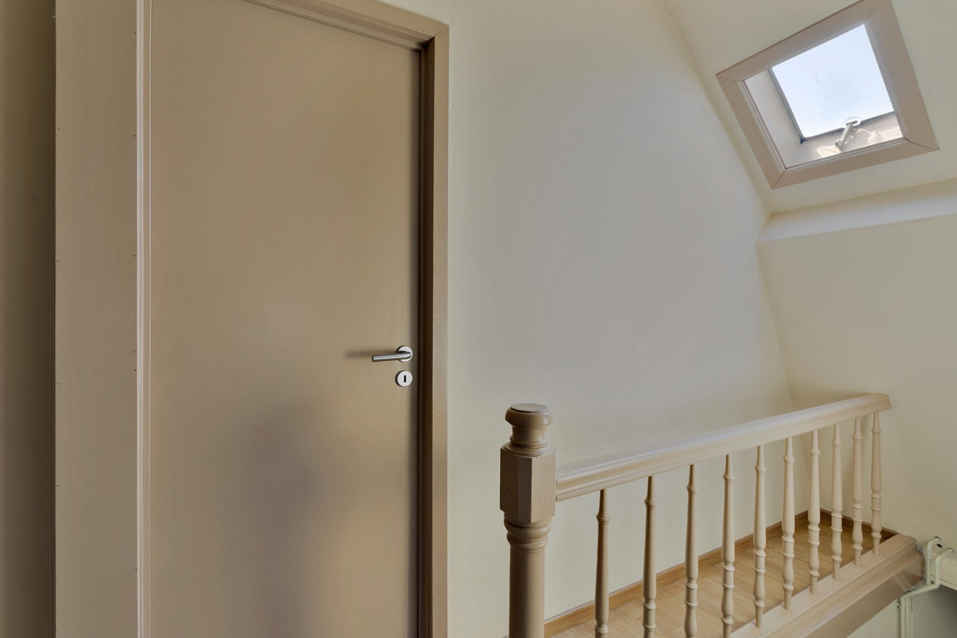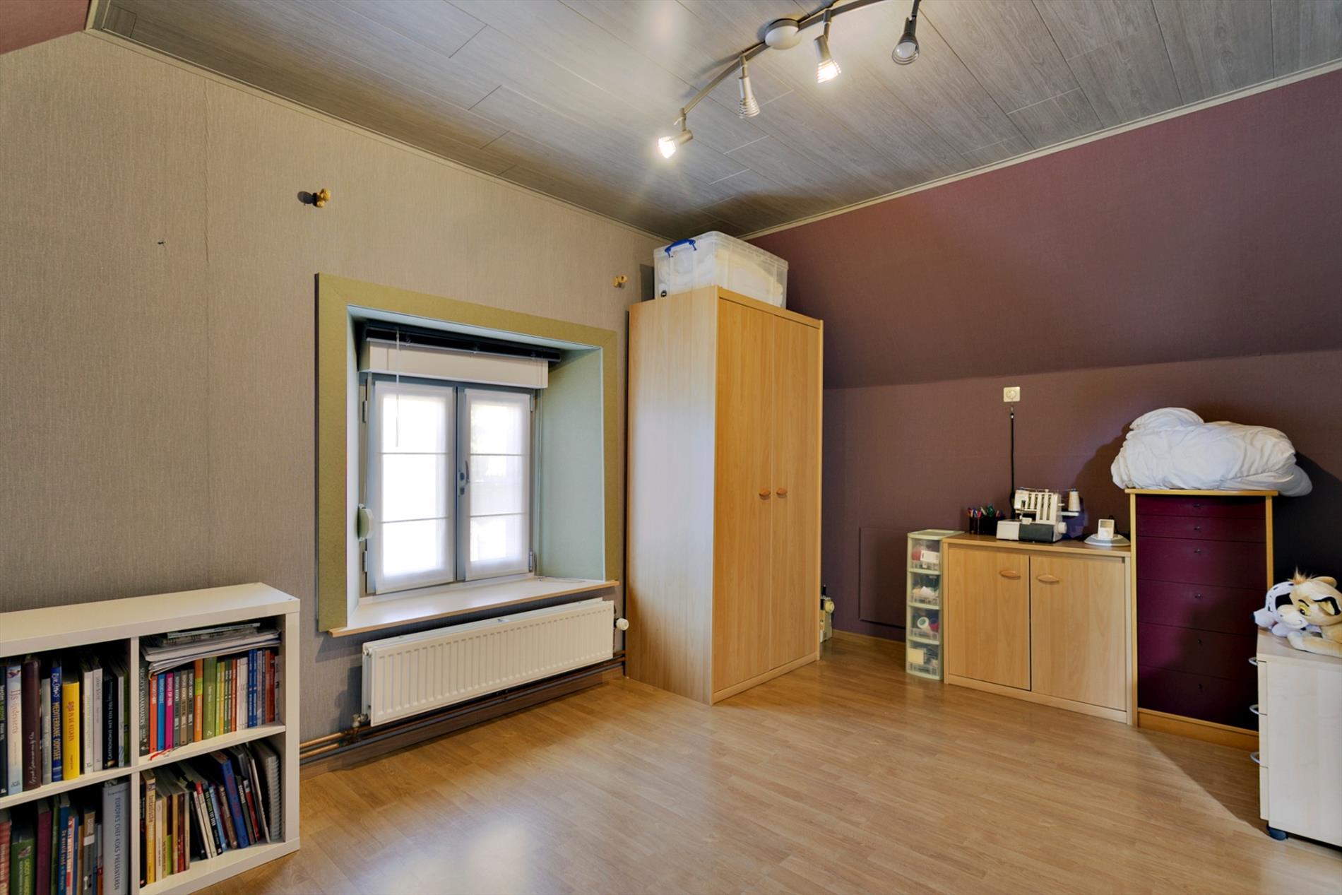 INTERIEUR: De woning bestaat onder meer uit een inkomhal (met vestiaire) - een gastentoilet - een lichtrijke woonkamer (met pelletkachel: sfeermaker) - ingerichte keuken met eethoek - handige kelder - twee gelijkvloerse slaapkamers - badkamer (douchekabine, wastafel, inbouwkast) - ruime wasplaats/bijkeuken - 2 volwaardige slaapkamers - een polyvalente (doorloop)kamer - handige zolderruimte(s) op de verdieping.