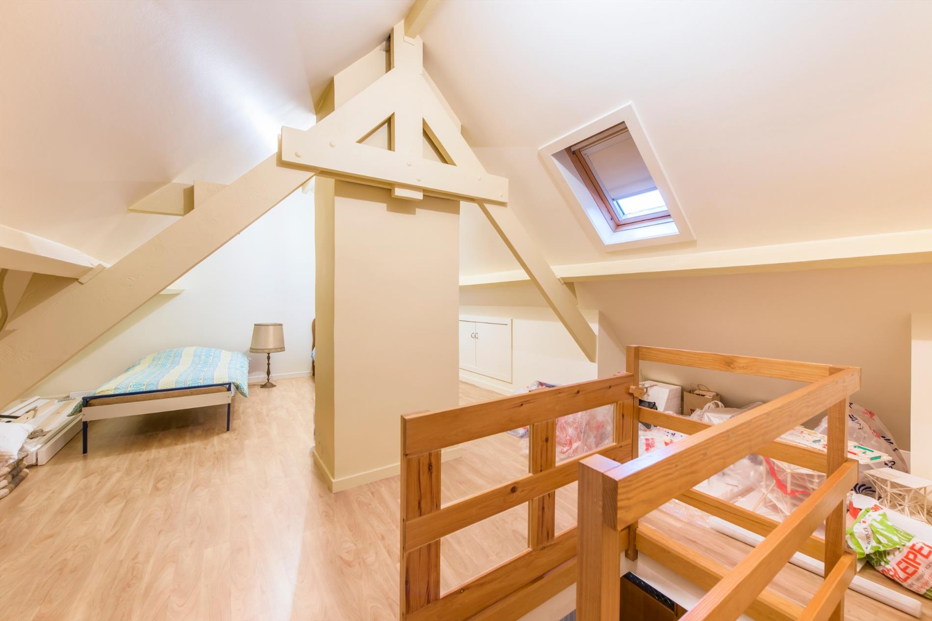 Op de eerste verdieping hebben we 3 slaapkamers, badkamer met ligbad, lavabo en toilet, nachthall met ingemaakte kast en trap naar de ingerichte zolderruimte.