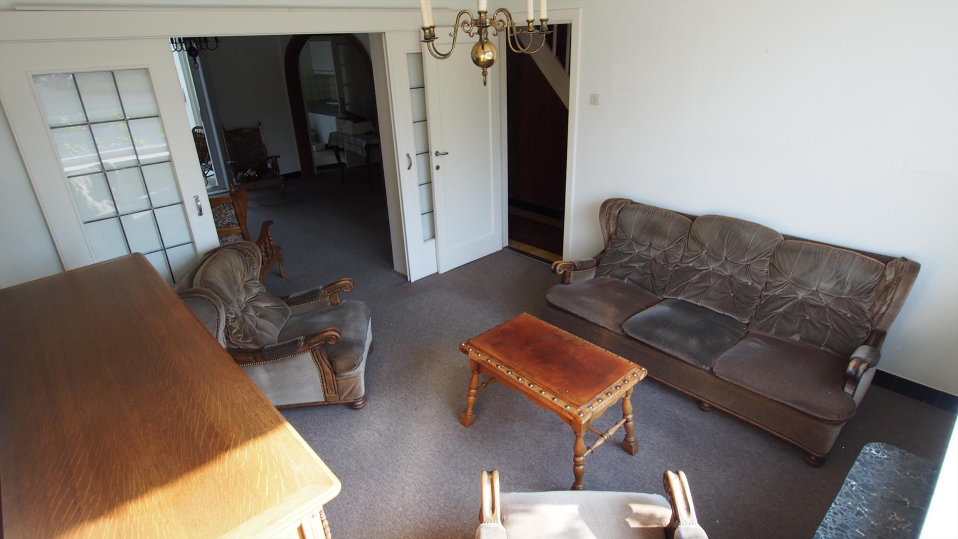 Te renoveren 5-slaapkamerwoning. Volgende woonindeling, met o.a. een inkomhall, living, keuken, veranda, berging,... Op het verdiep hebben we een badkamer en 5 slaapkamers. Vaste trap naar de zolder. Deels voorzien van dubbele beglazing. Tot. opp. 181m². LAAG BESCHRIJF MOGELIJK. Druk uw stempel op dit nieuw woonverhaal !!!