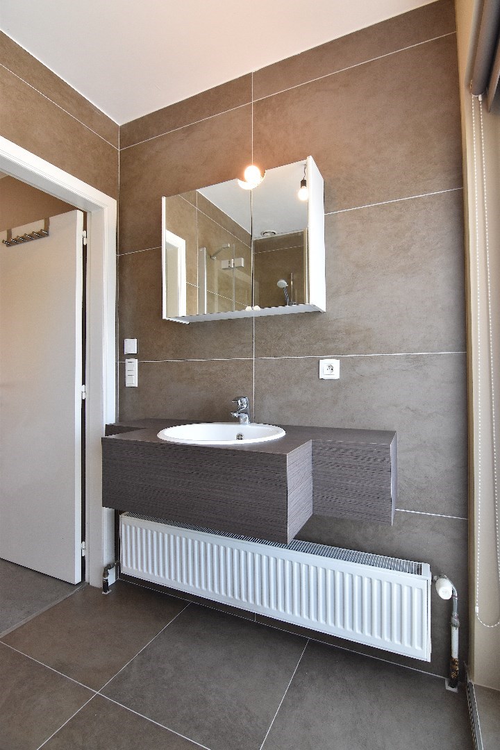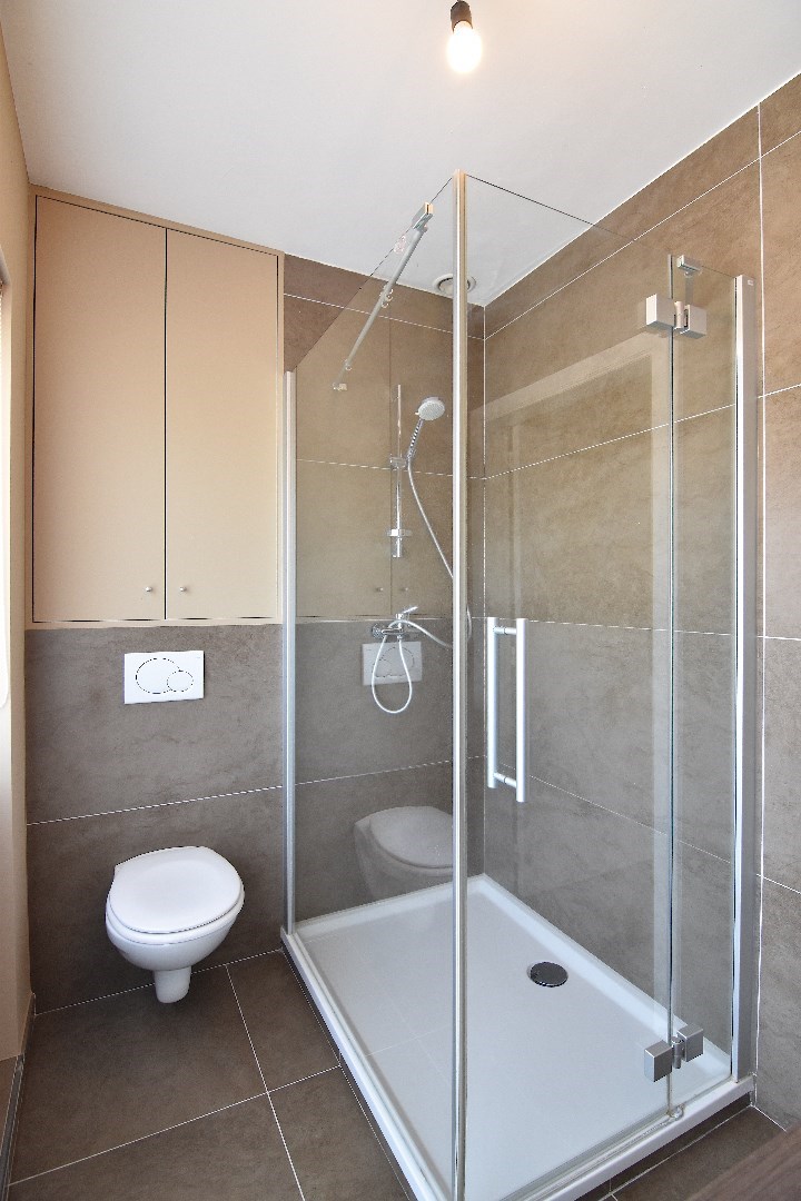 Op de verdieping hebben we 3 slaapkamers en badkamer met douche, toilet en lavabomeubel.