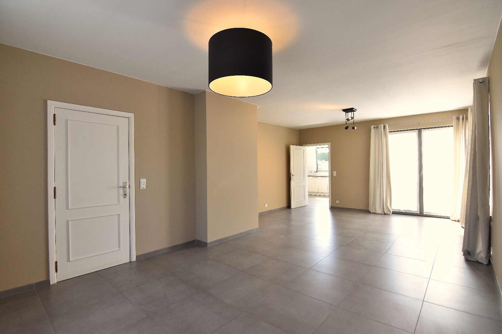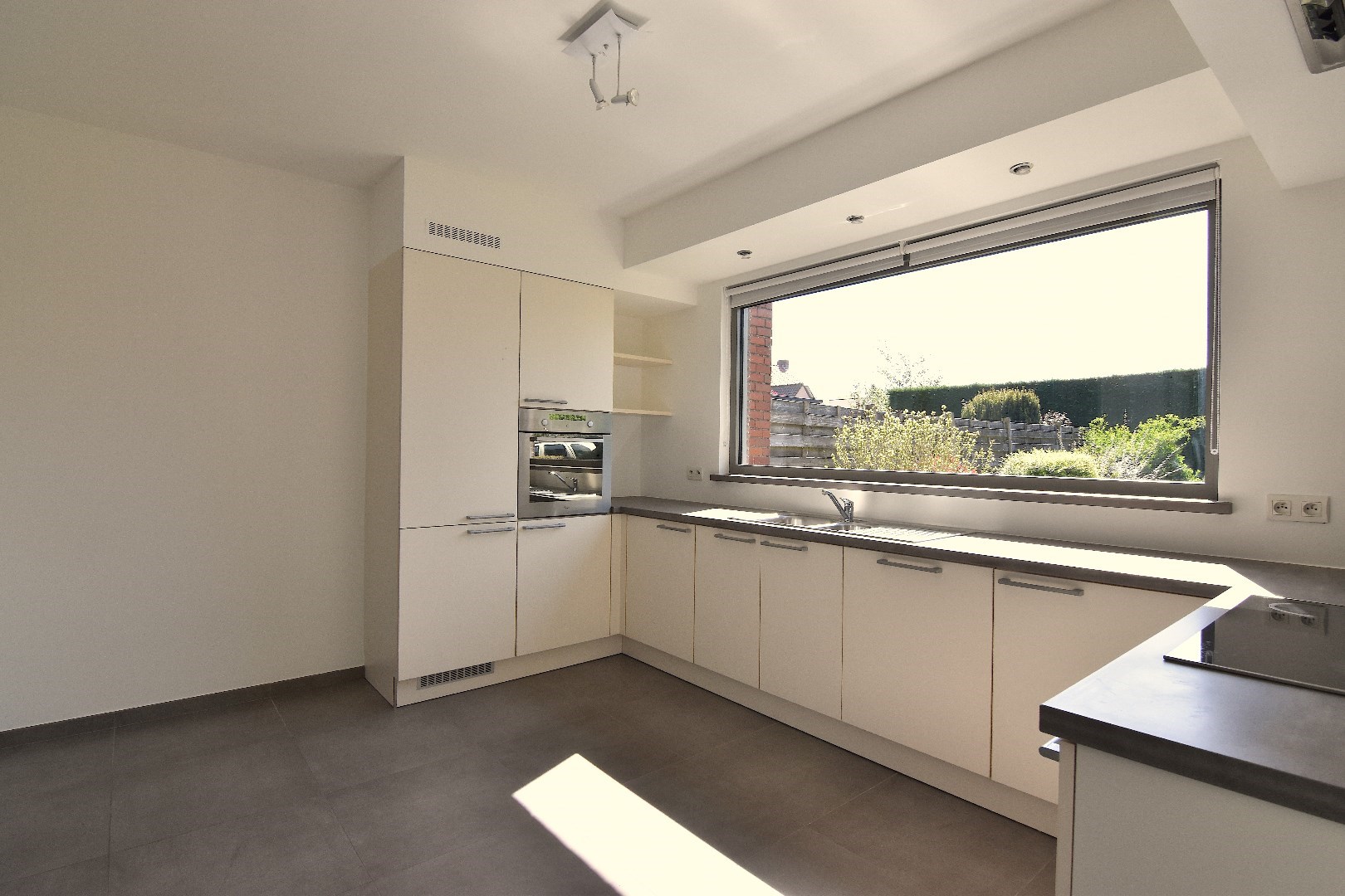 Op het gelijkvloers hebben we volgende functionele woonindeling: inkomhal met ingebouwde vestiairekast, gastentoilet en koele berging onder de trap. Via de grote raampartijen komt er veel licht binnen in de gezellige woonkamer met aansluitend de volledig ingerichte keuken met grote berging.
