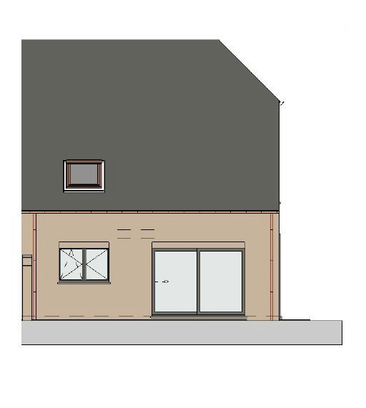 Half open nieuwbouwwoning te midden een aangename groene omgeving en toch een vlotte verbinding met de autosnelwegen. "wind en waterdicht" afgeleverd. Ze voorziet in hedendaags comfort en aan de meest recente normen van isolatie en ventilatie. Volgende woonindeling : ruime inkomhall met gastentoilet, lichtrijke leefruimte met aansluitend de mogelijkheid voor een open ingerichte keuken, garage, terras en tuin. Op het verdiep : 3 slaapkamers, apart toilet en een badkamer. Zolderruimte. Grondopp. 302m². (afbeelding = illustratie, ontwerp te bouwen woning volledig naar eigen keuze koper)