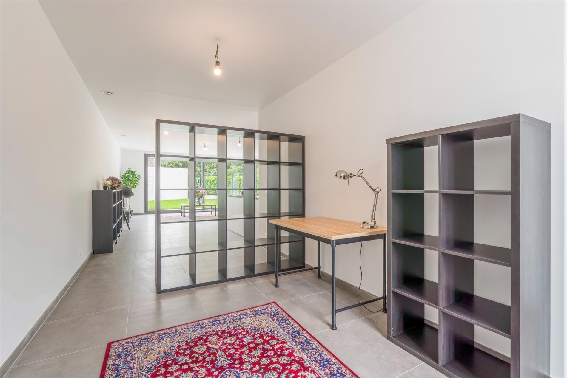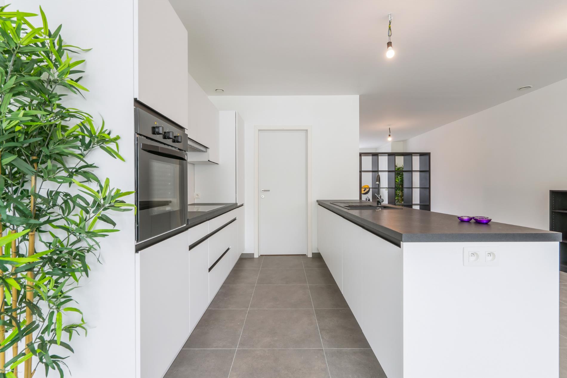 Op het gelijkvloers is een magnifiek, lichtrijke leefruimte / leefkeuken aanwezig. De keuken is volledig voorzien van alle toestellen. Aansluitend vinden we een praktische berging met aan- en afvoer voor wasmachine.